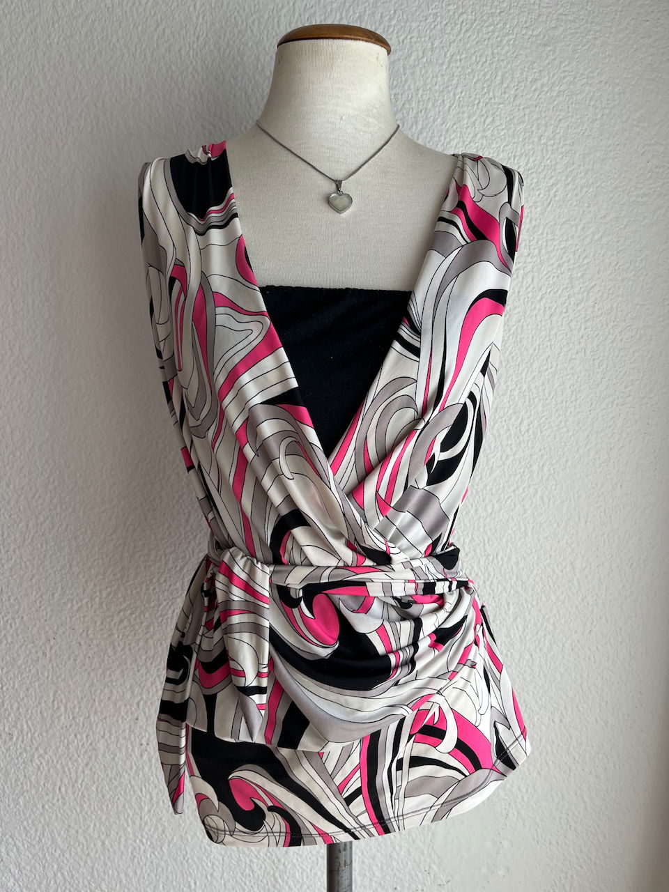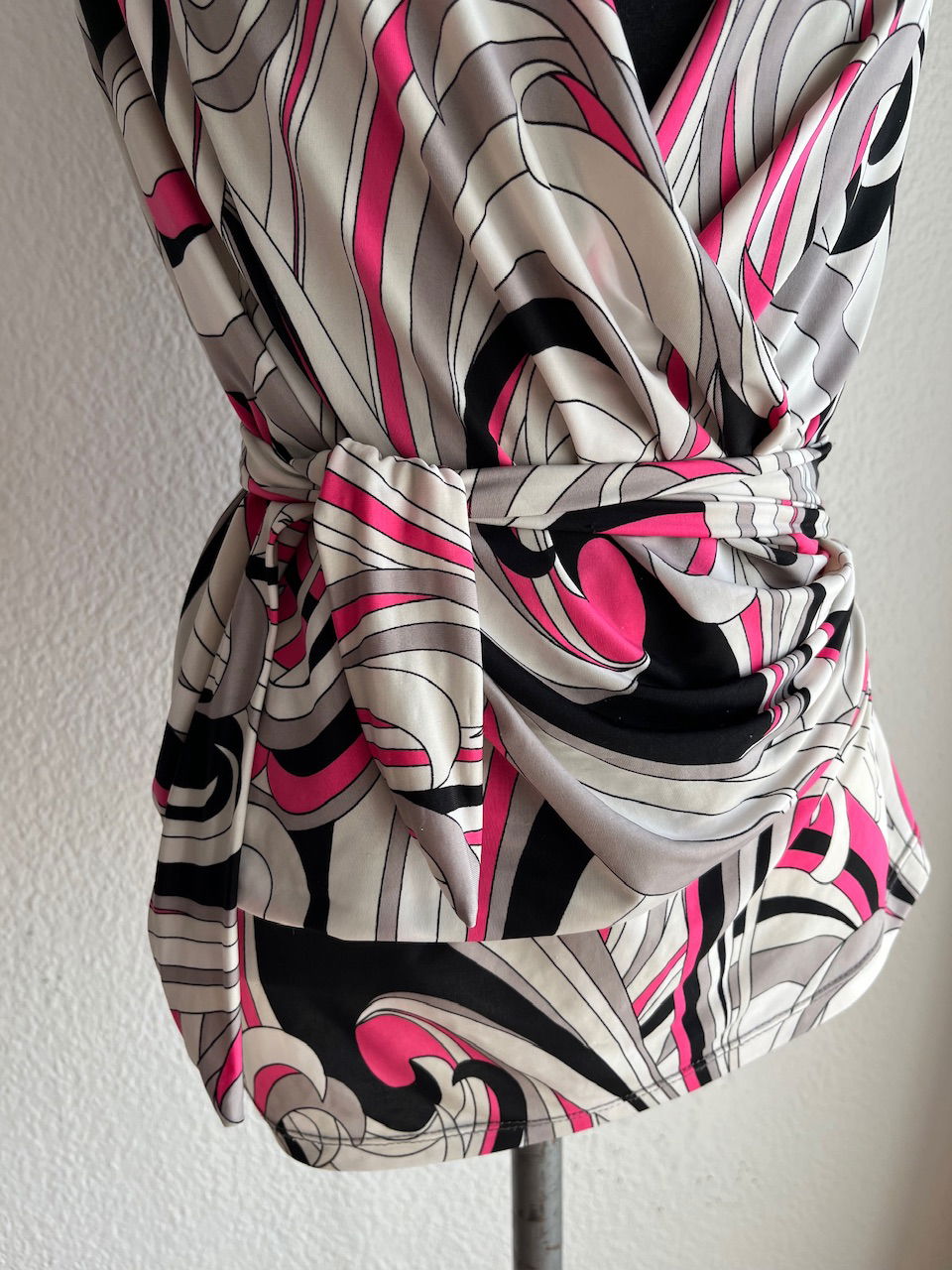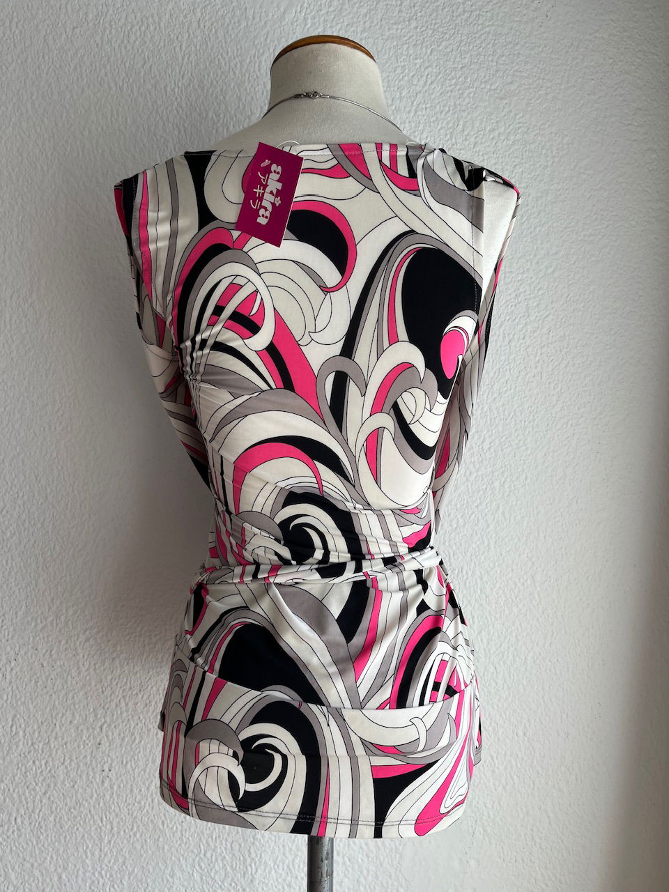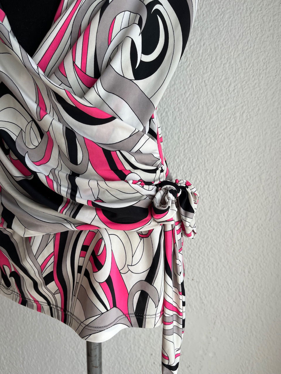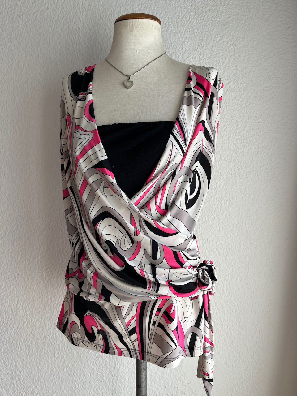 blusa de seda fría y algodón, con detalle de lazo para ajustar a gusto. puede ir para un xs, como le queda a la maniquí, hasta un L . impecable