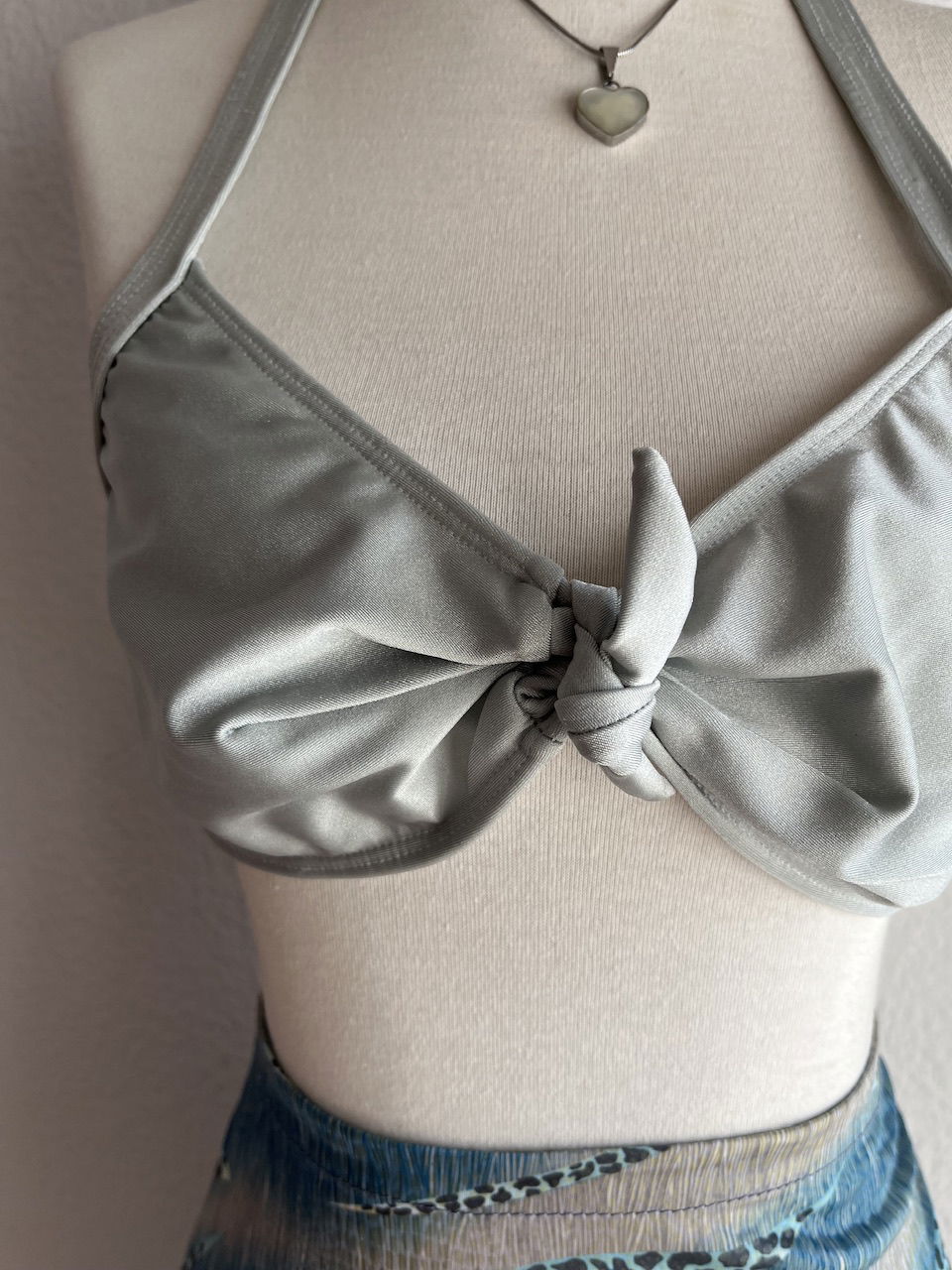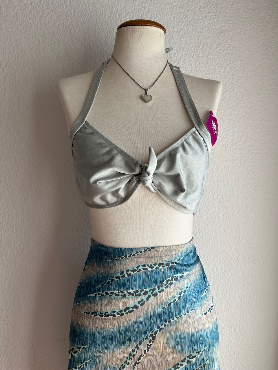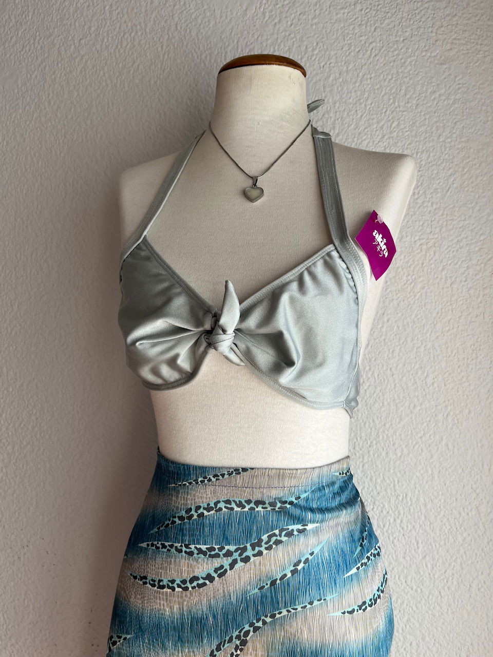 bikini top plateado con brillos. es de lycra con lurex. original de los 00s. talle 85. como nuevo