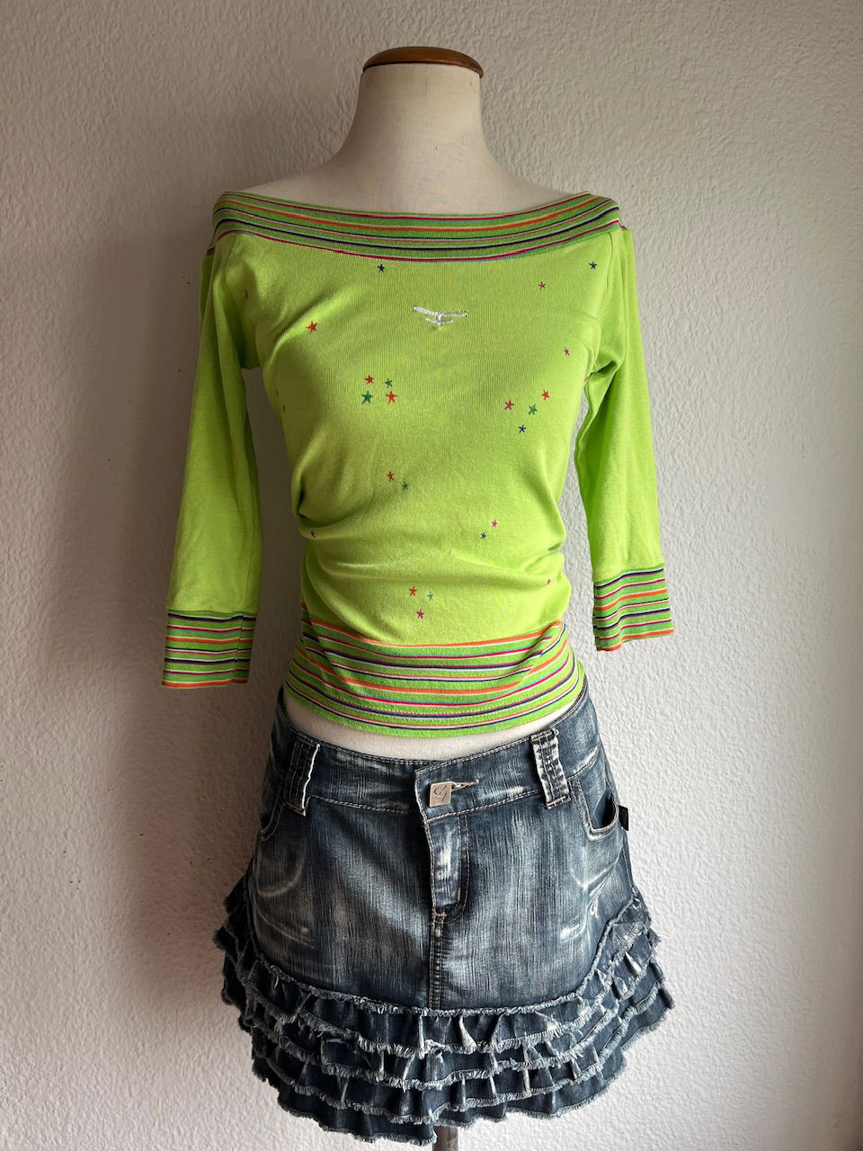 top kosiuko original. es de los 00s puede usarse strapless o cuello bote. es elastizado. tiene el logo bordado en el frente y distintas estrellas pintadas a mano