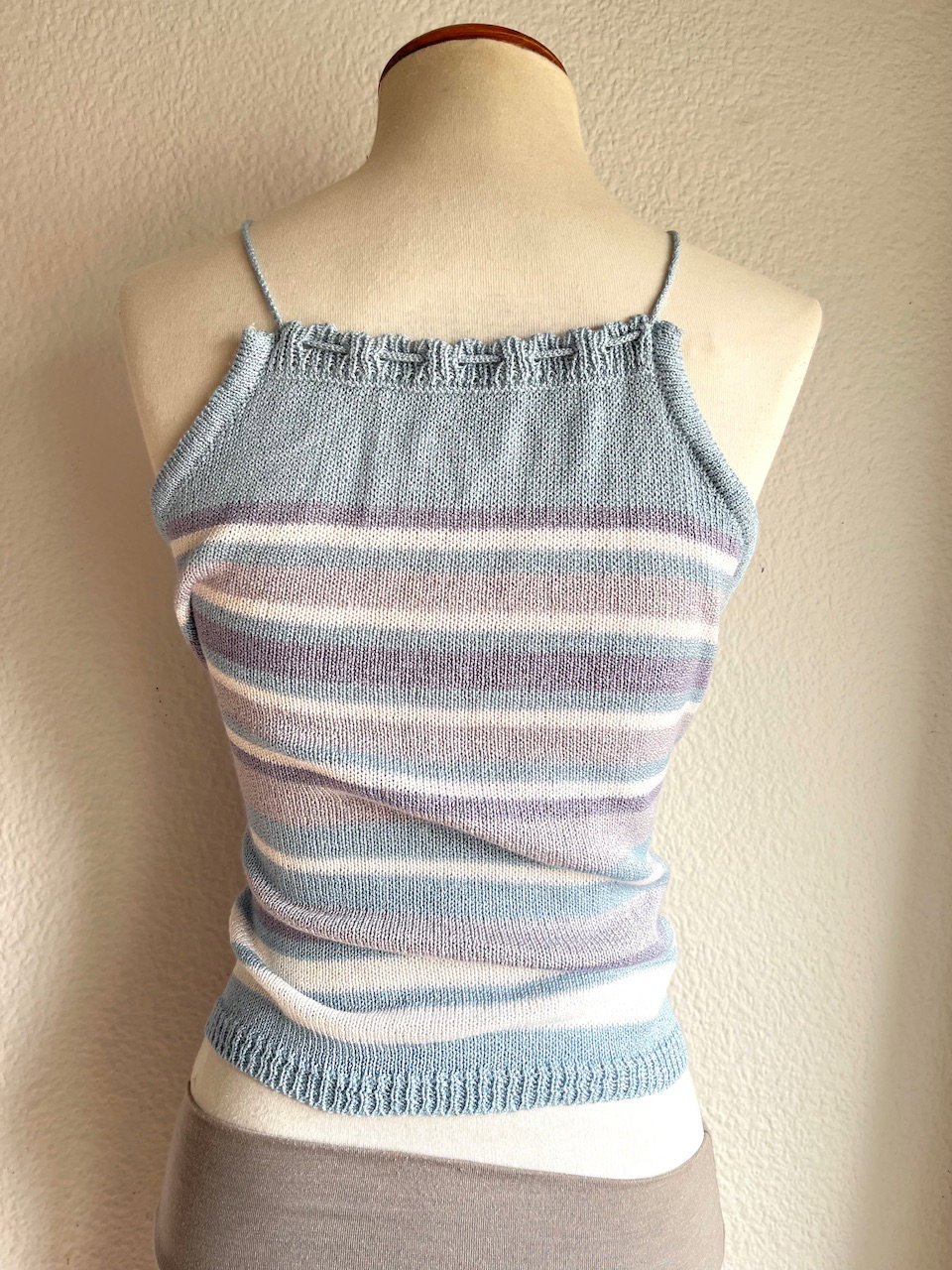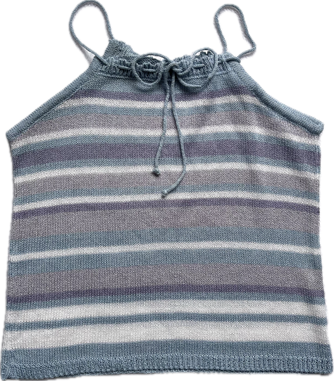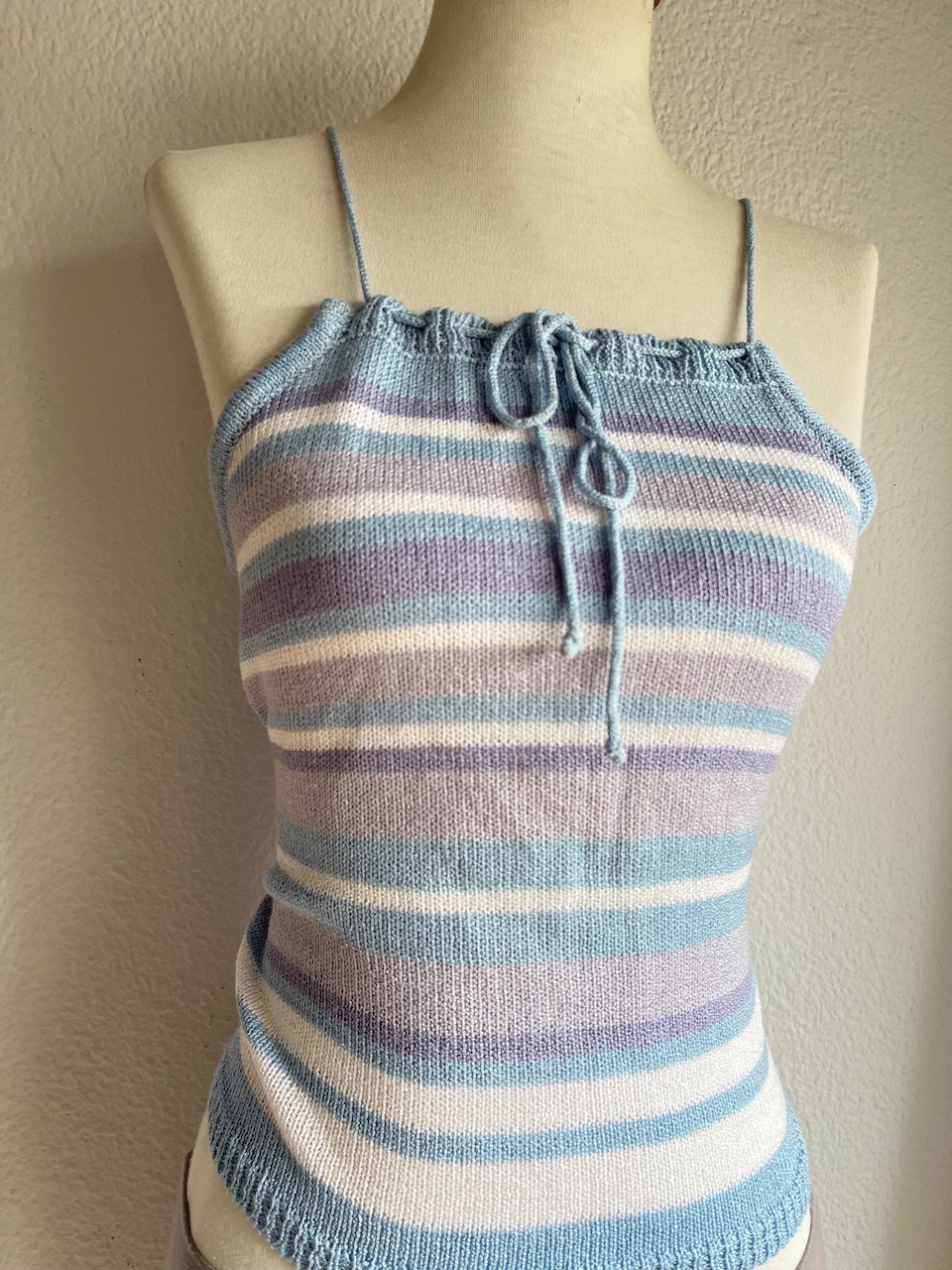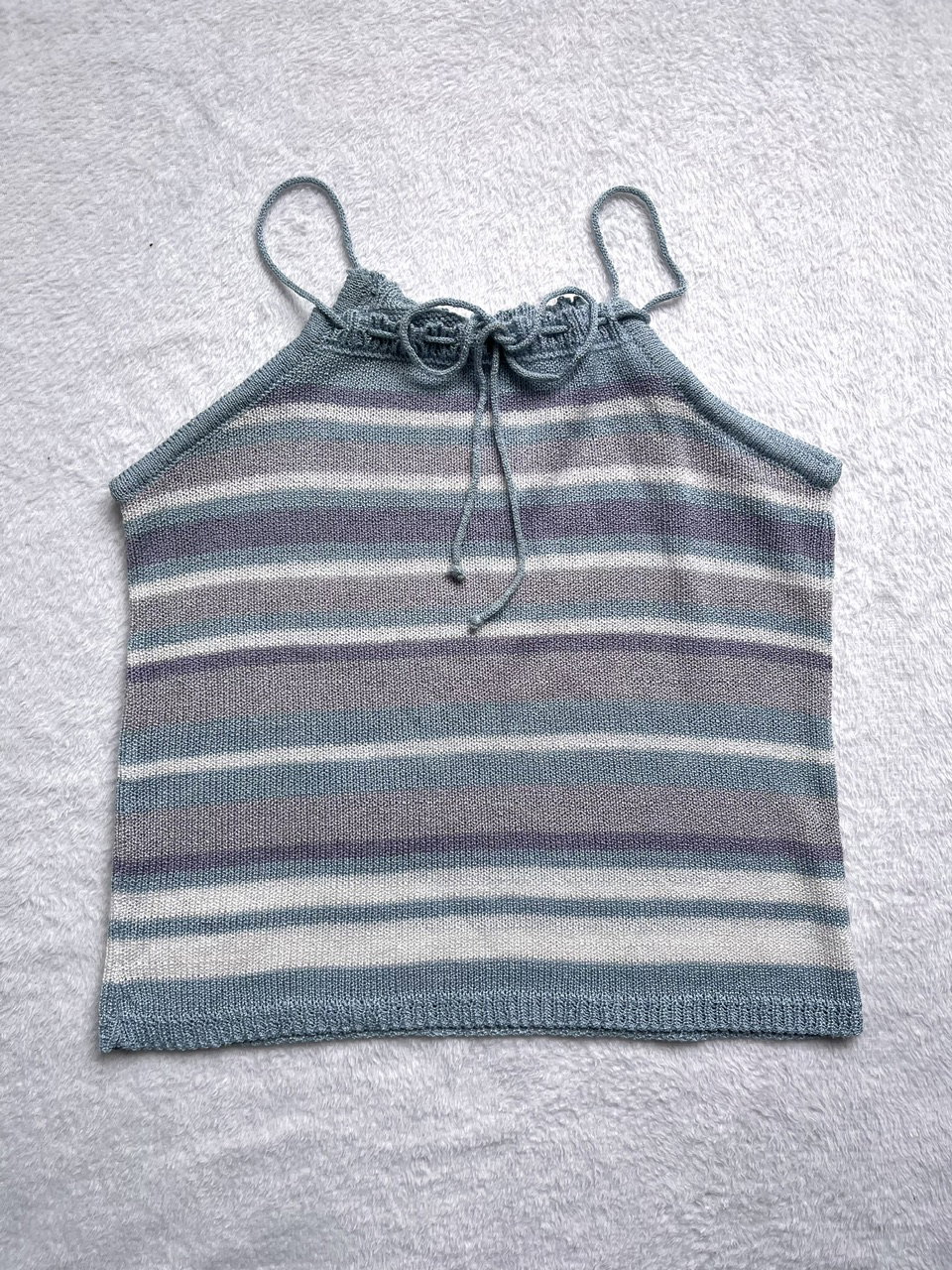 top tejido original de los 00s. en colores pasteles. super súper hermoso, se adapta a varios talles. las tiritas son regulables. hilo acrílico. talle m aprox