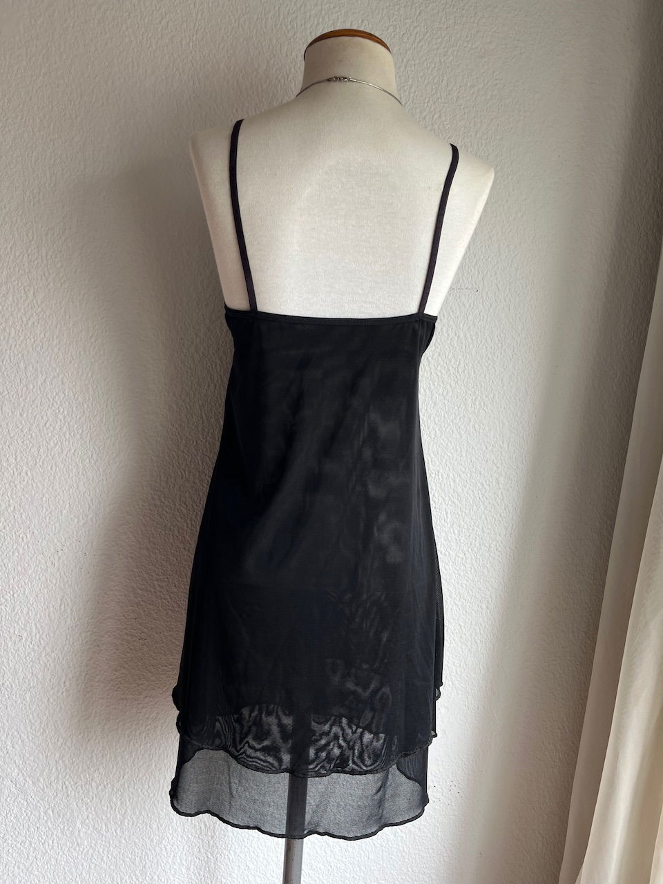 vestido de microtul con doble falda al bias, con mucho vuelo. marca la cintura y cuenta con breteles regulables. es de la marca marcela koury. nuevo sin uso. original de los 00s