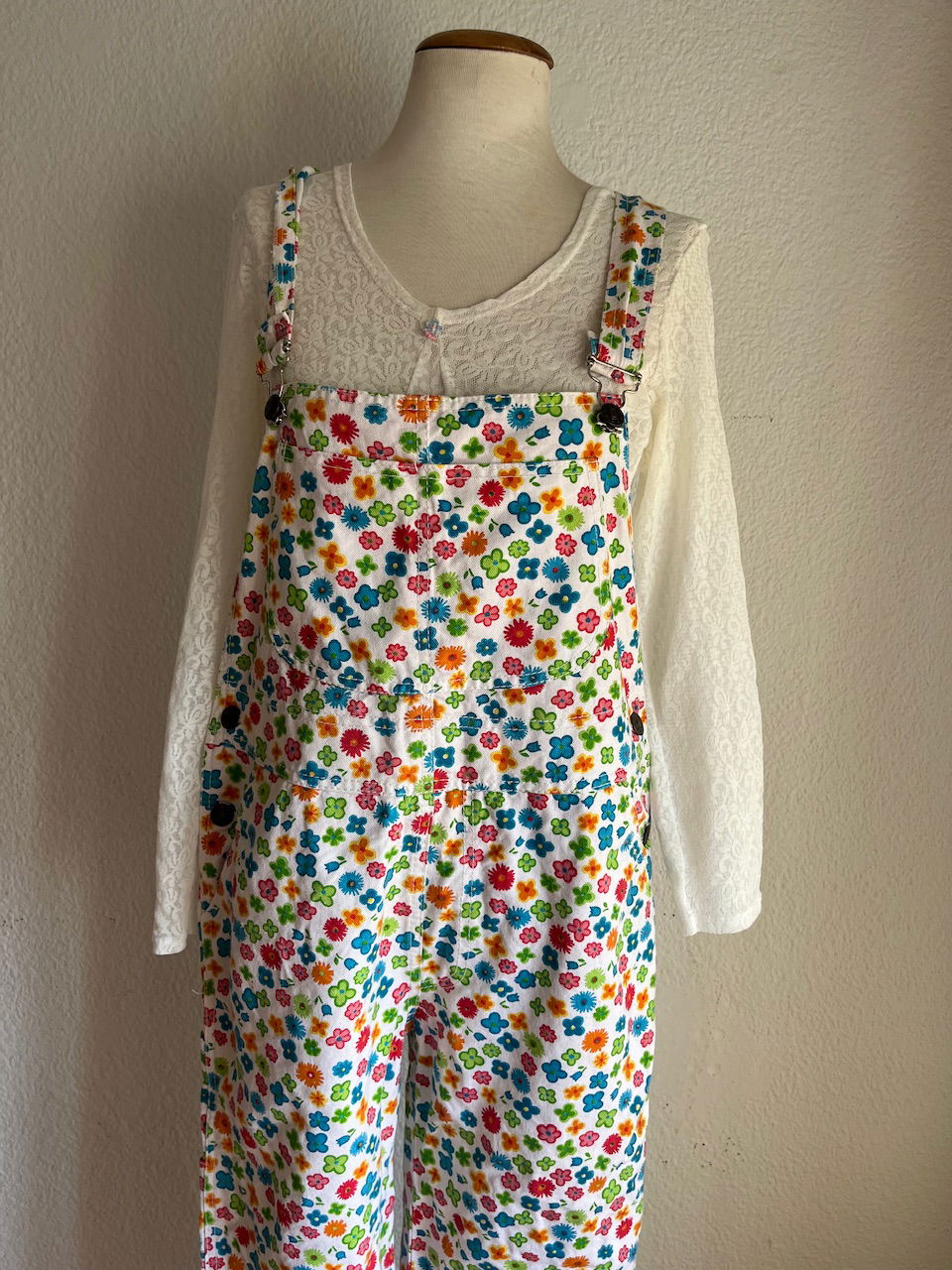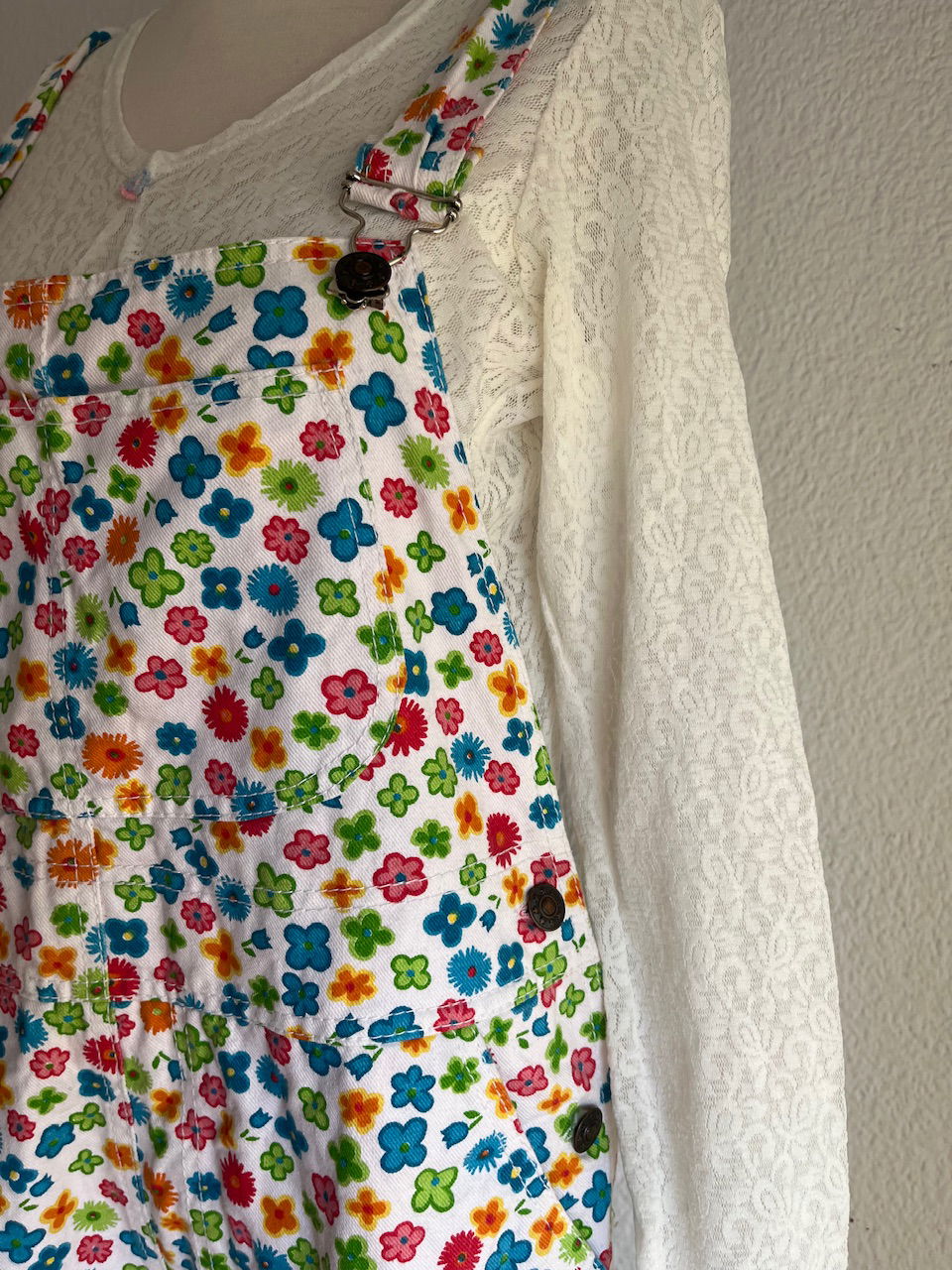 jardinero increible original de los 90s. completamente estampado con florcitas de colores. impecable estado como nuevo. aprox talle 36 o 38