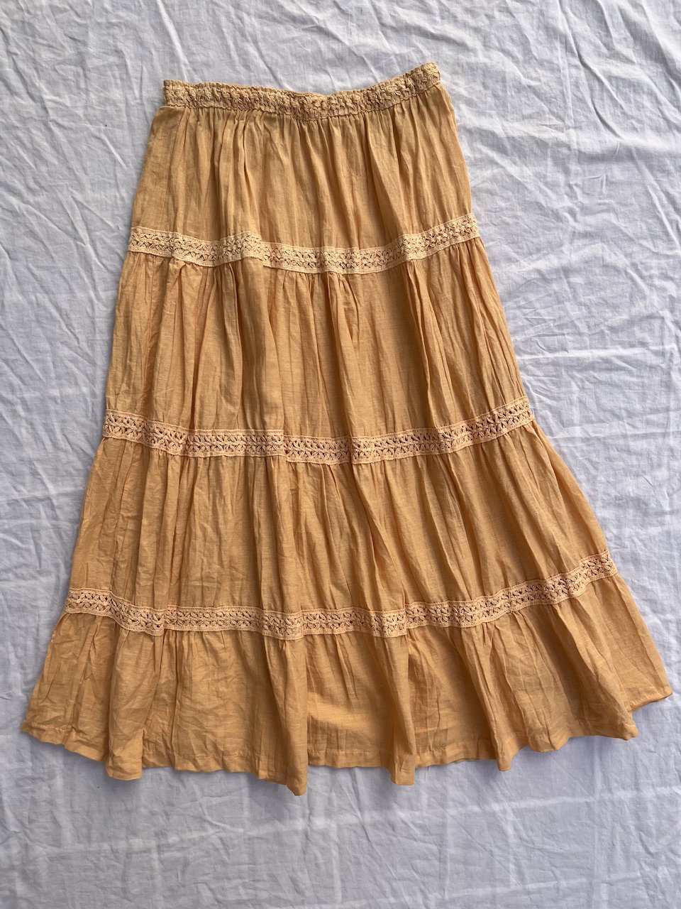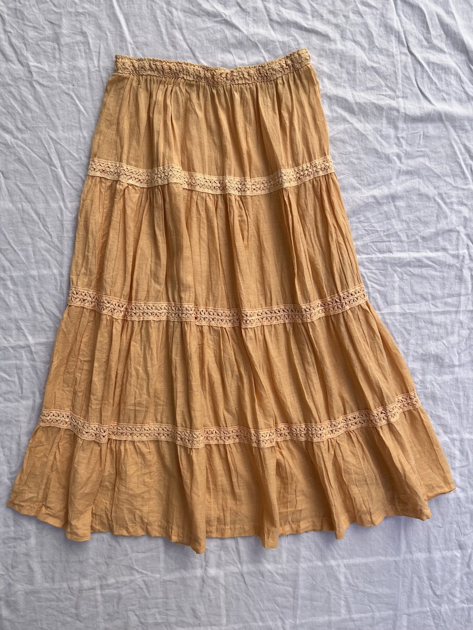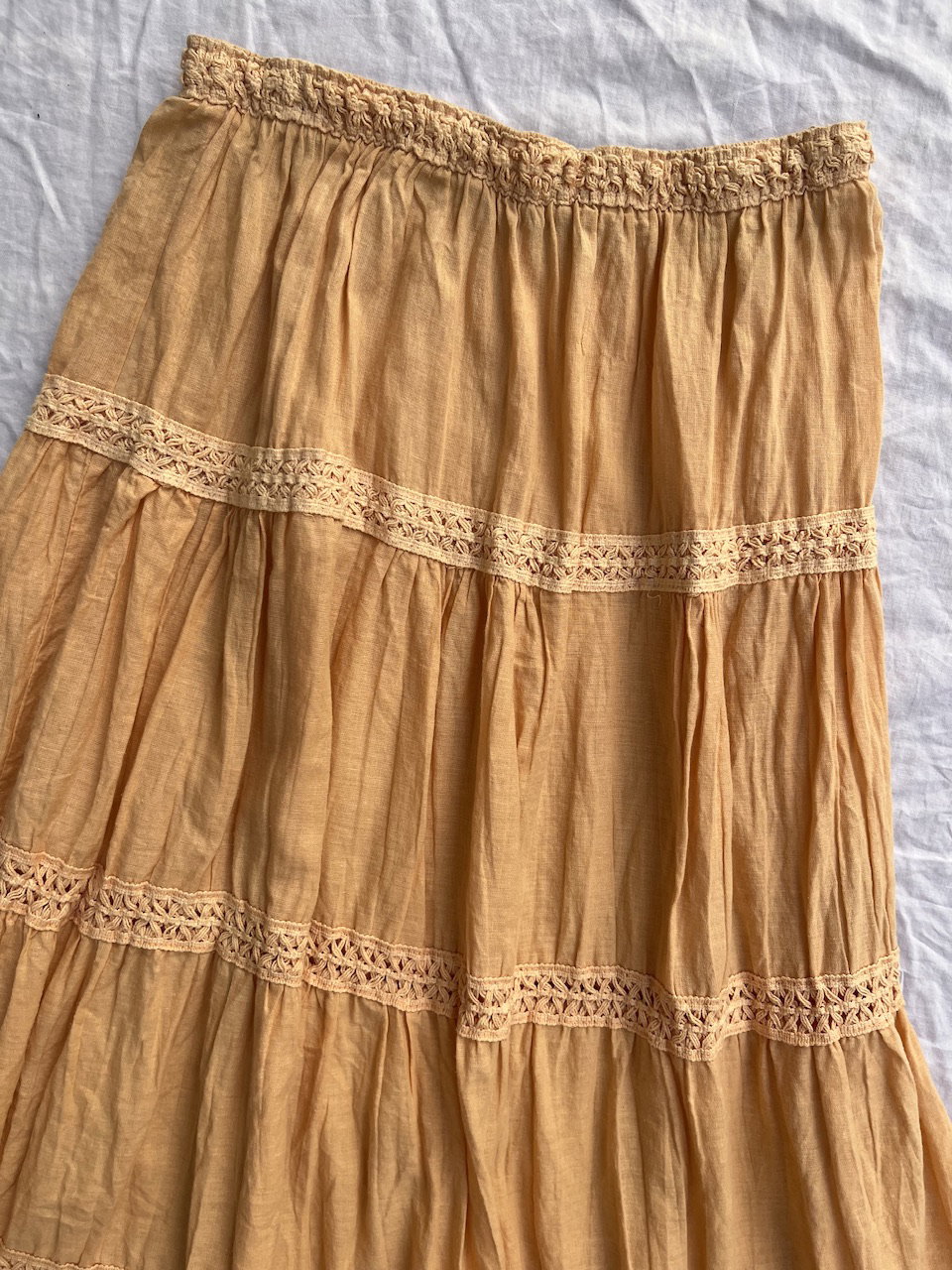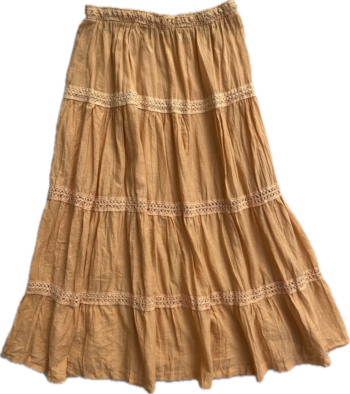 pollera larga de bambula con guardas. color durazno. súper súper bonita. impecable