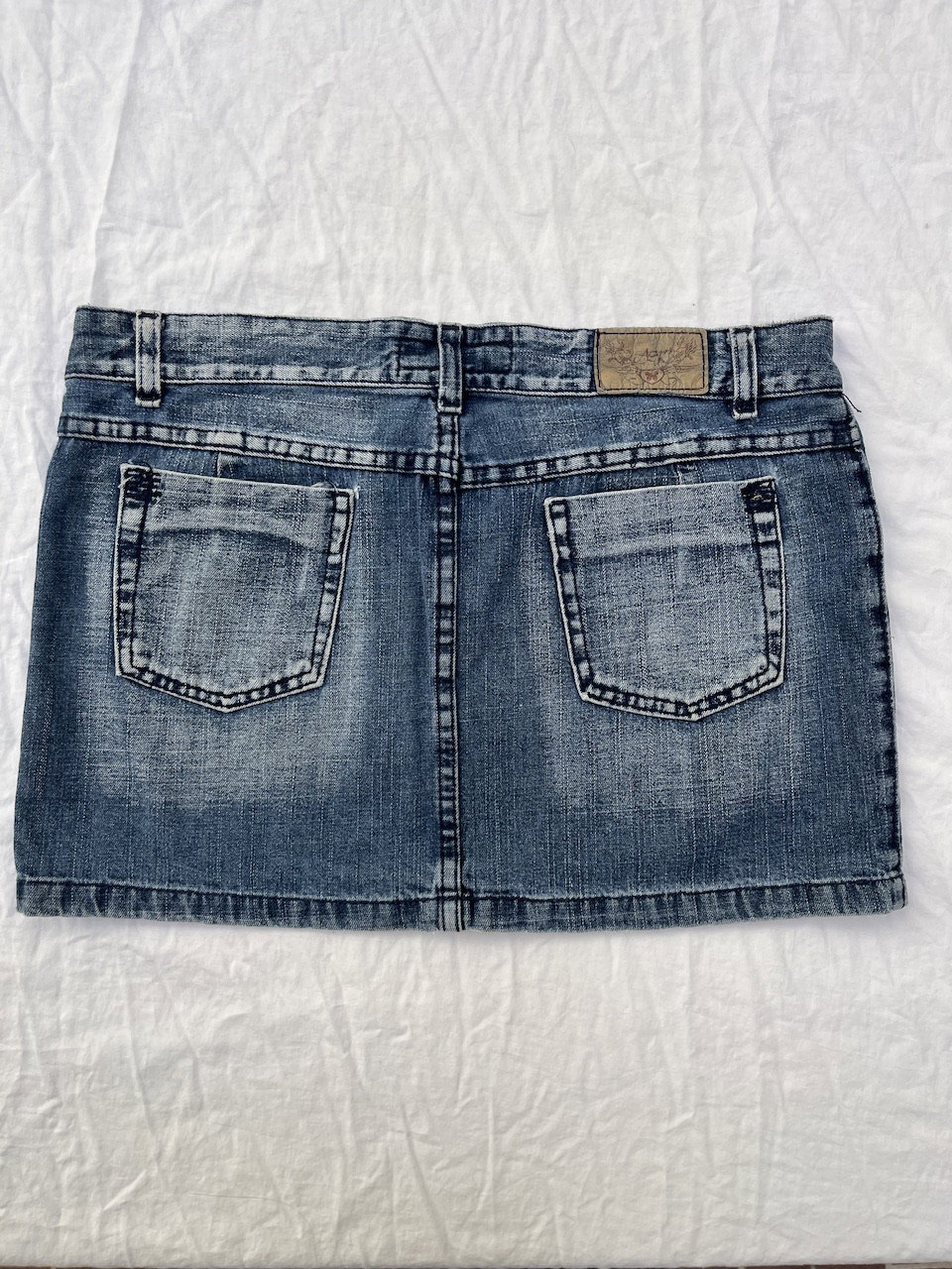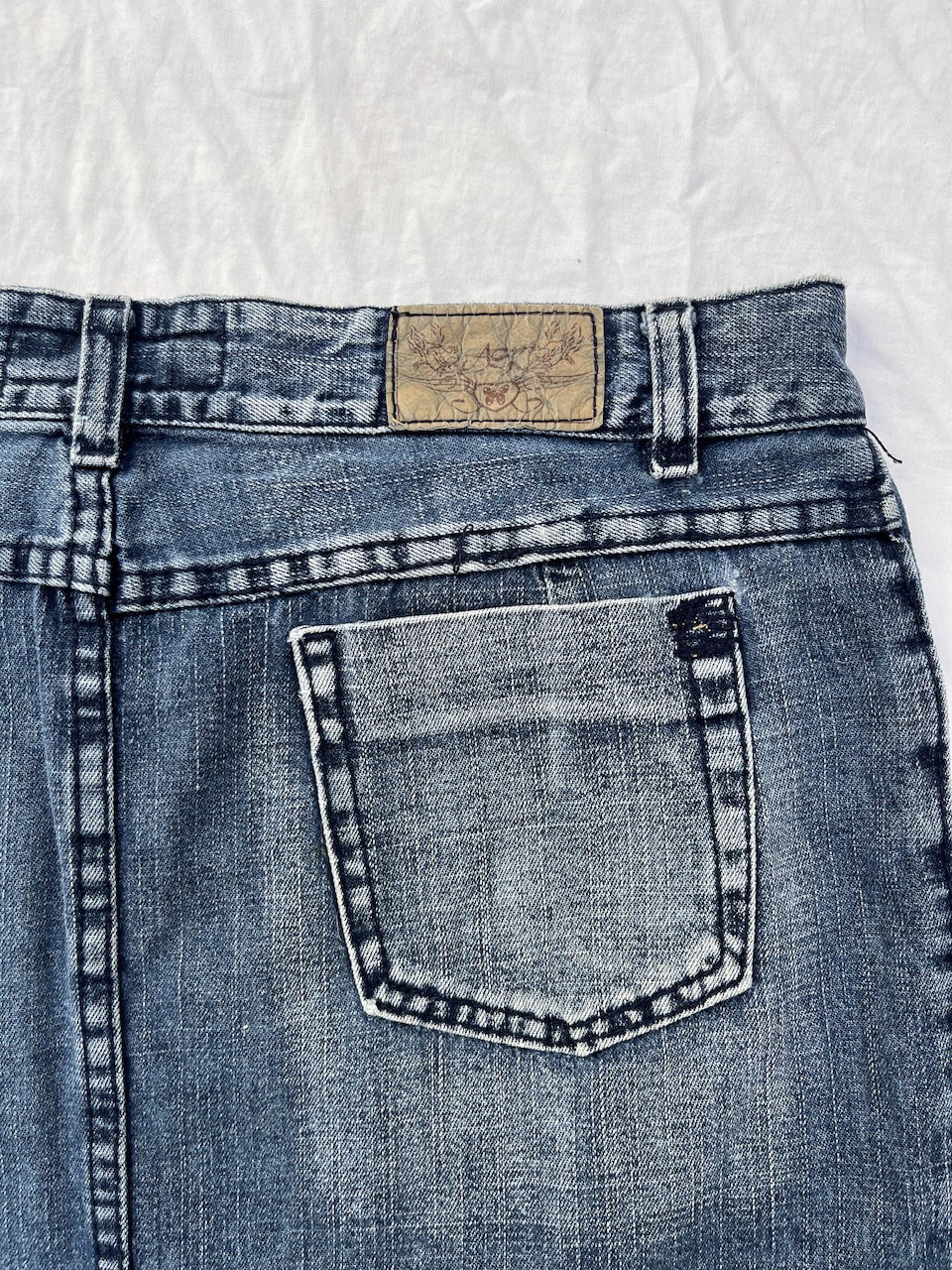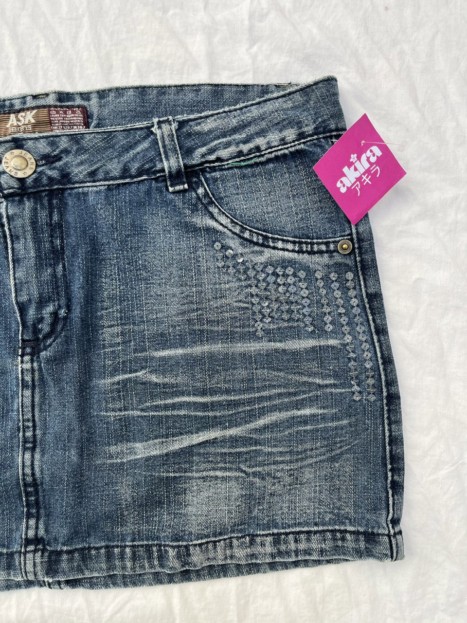 hermosa mini de jean original de los 00s - con bordados y apliques, aprox talle 40