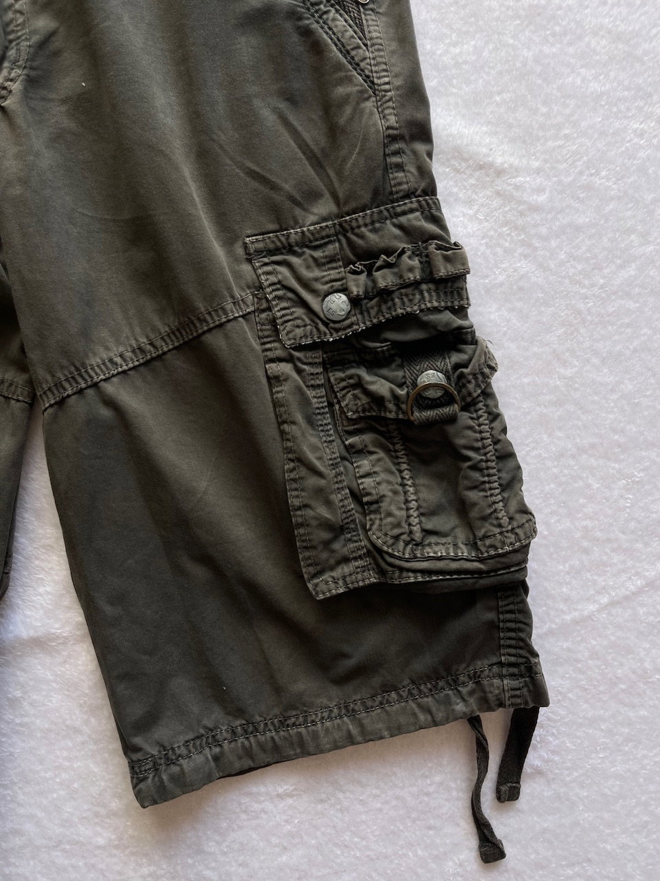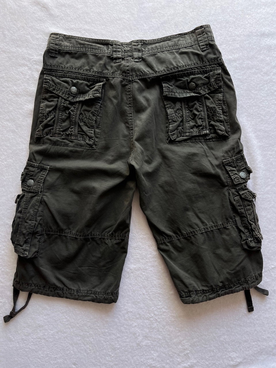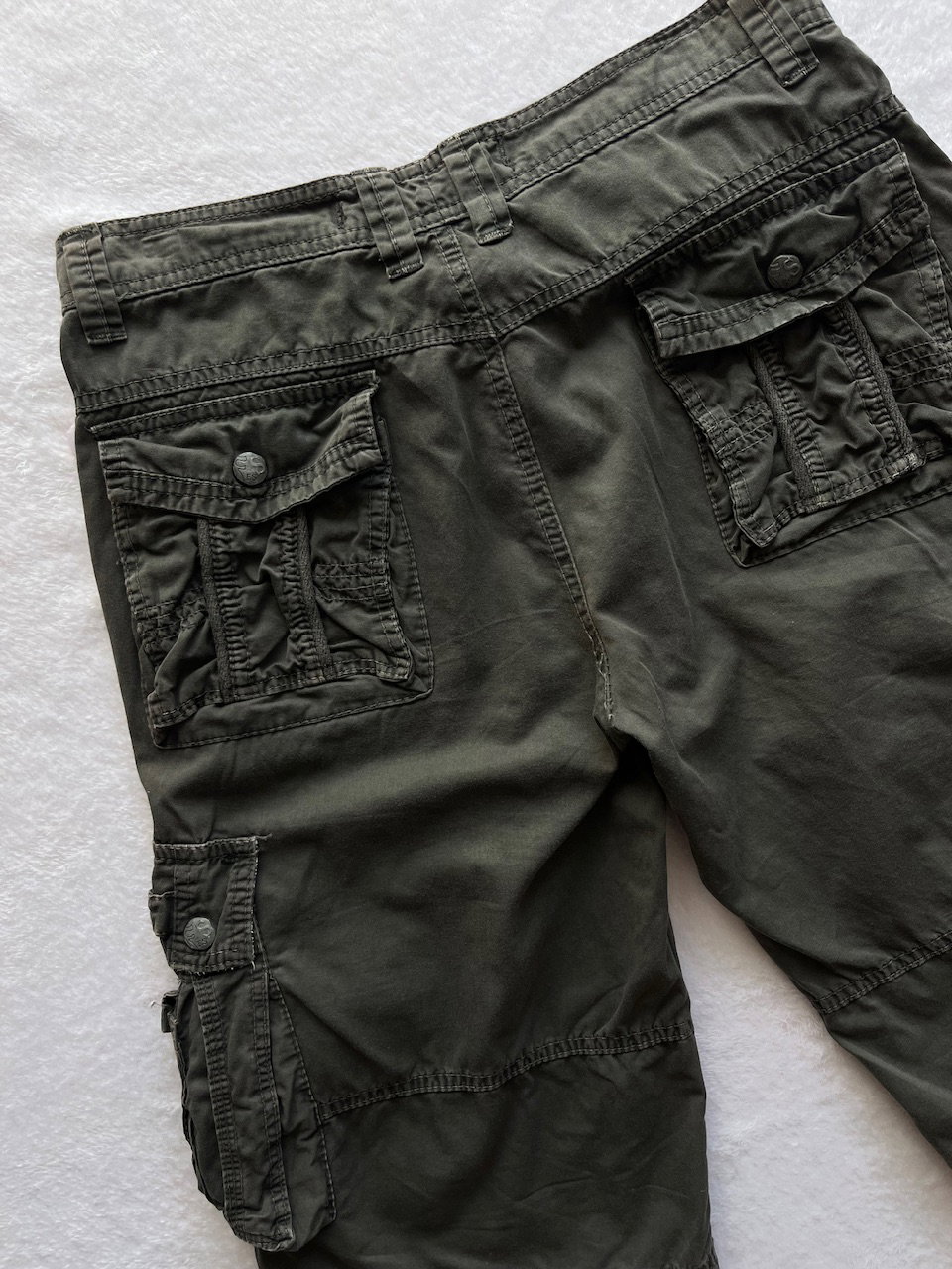 bermuda cargo color verde musgo, con varios bolsillos funcionales. muy buen estado general