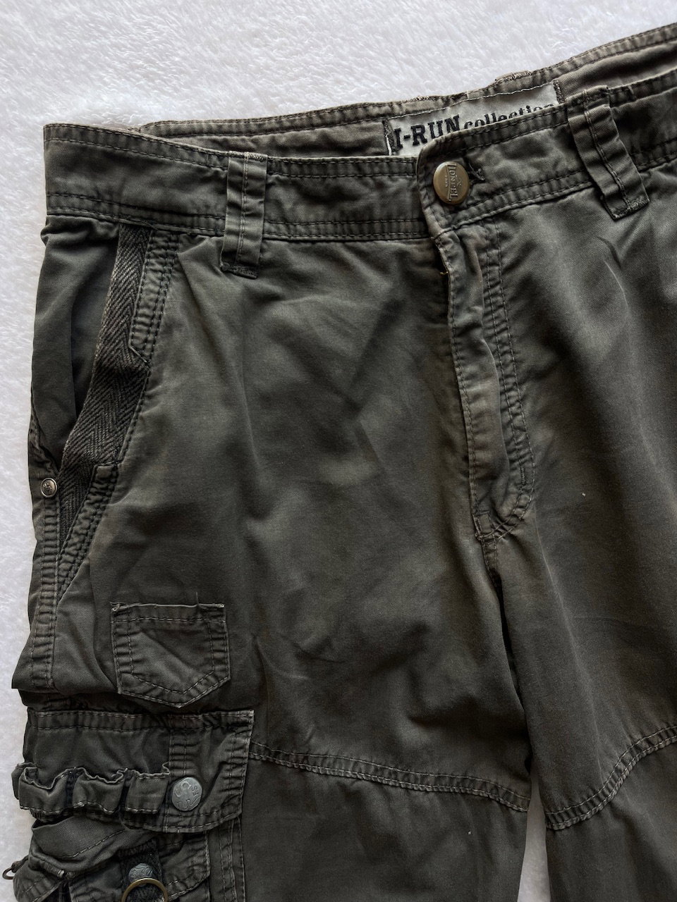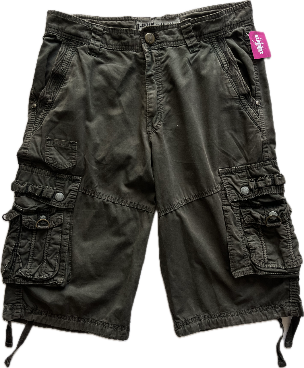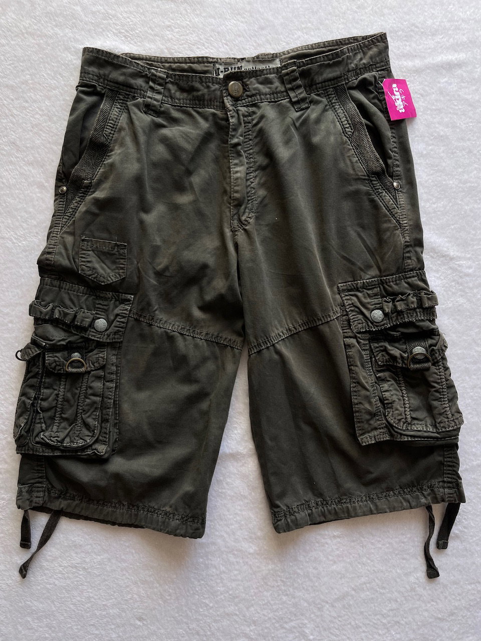 bermuda cargo color verde musgo, con varios bolsillos funcionales. muy buen estado general