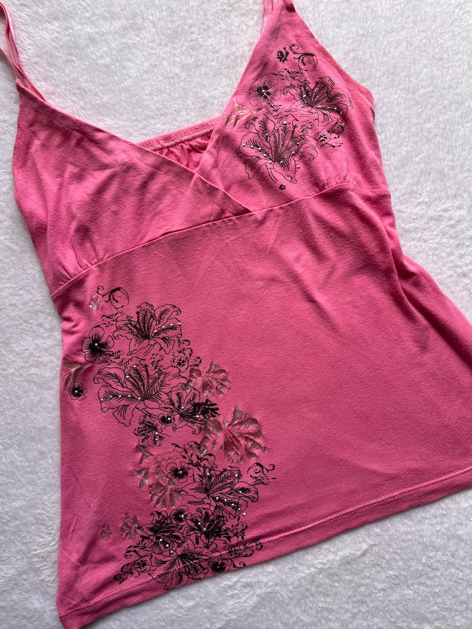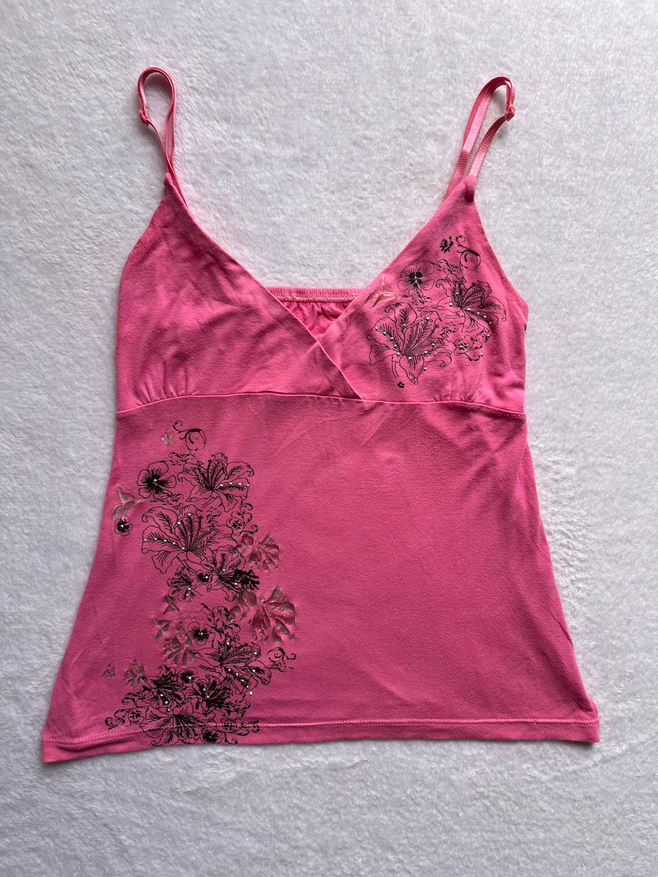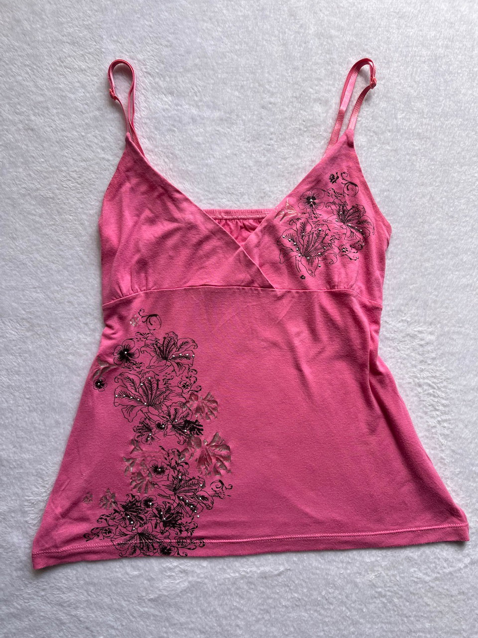 top rosita súper cute con breteles regulables y estampa de flores hawaiianas. talle m