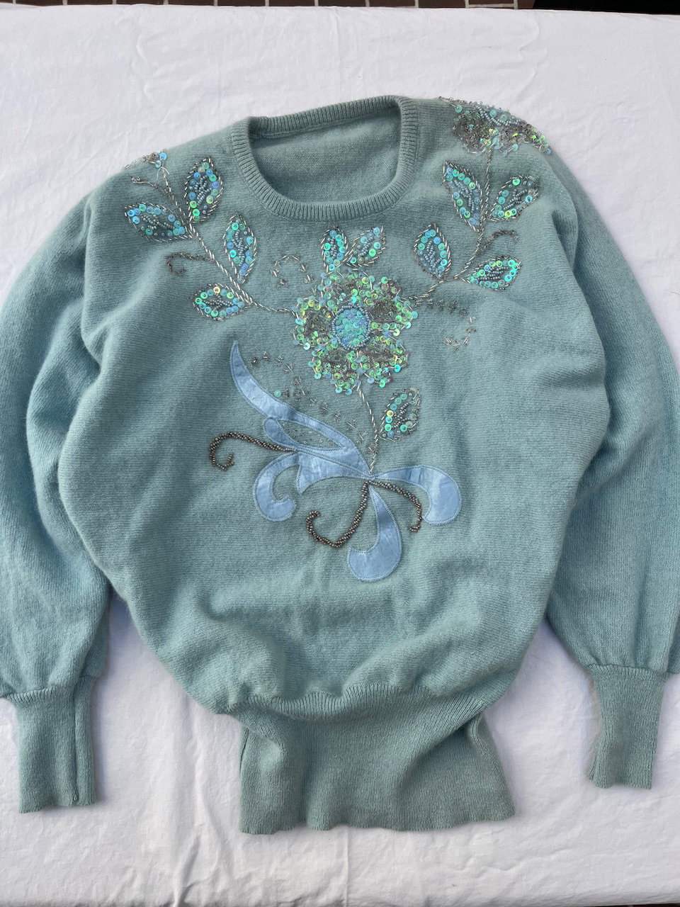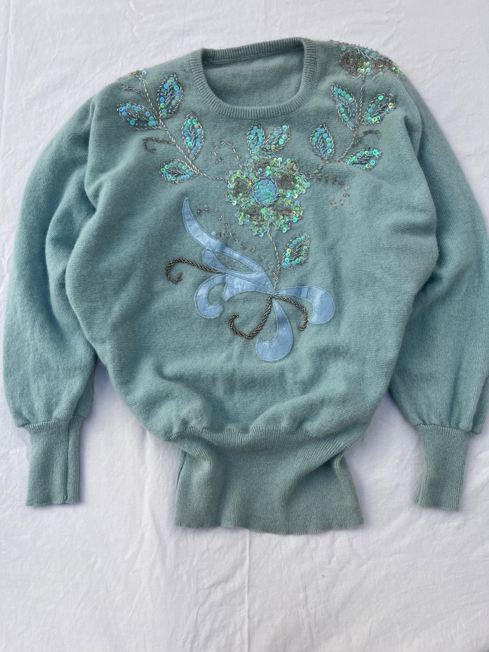 swtr vintage original de los 80s es 100% lana super suavecito. es un talle m aprox y se encuentra full bordado y estampado. marca la cintura, tiene mangas murciélago. ver único detalle en la espalda atrás
