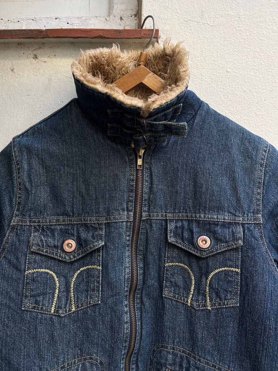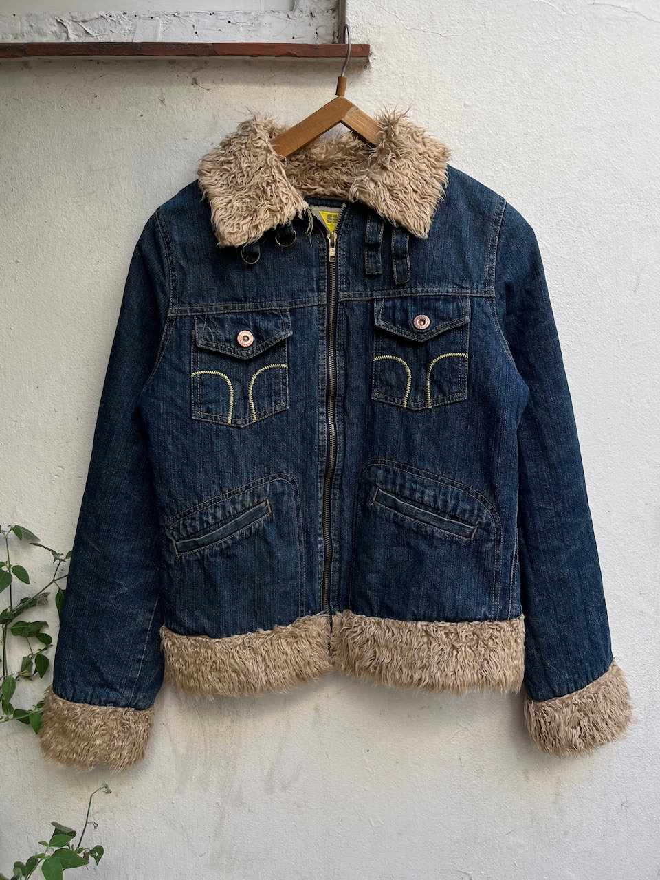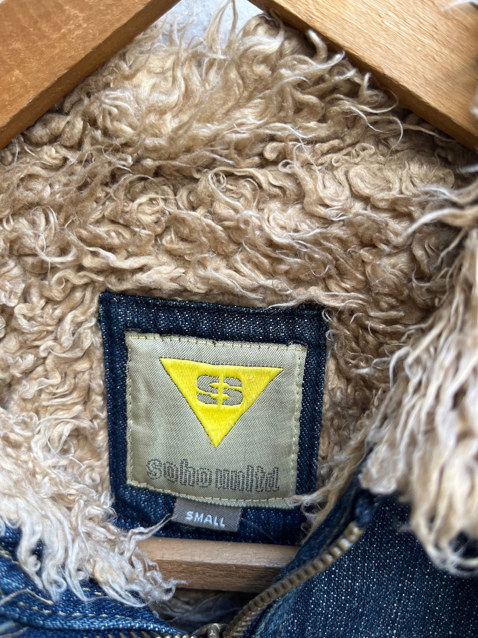 campera de jean original soho de inicios de los 00s. se encuentra en impecable estado, es un estilo penny lane con pelitos en puños y terminaciones. cuenta con cuello tipo mao o motociclista