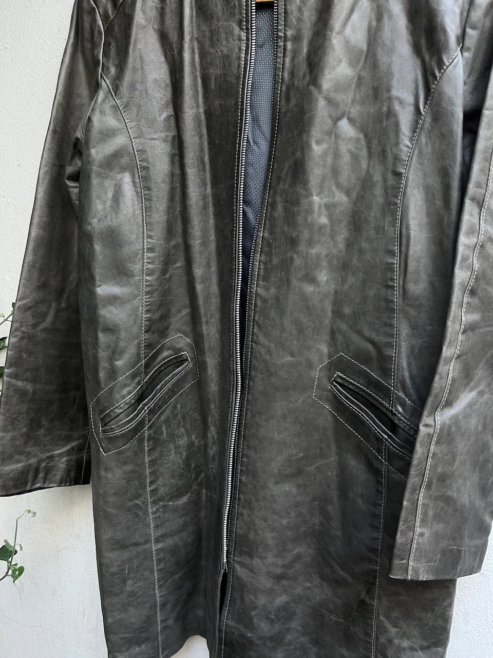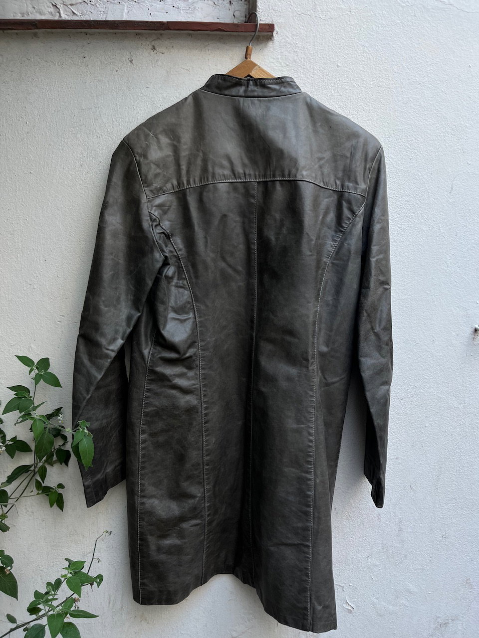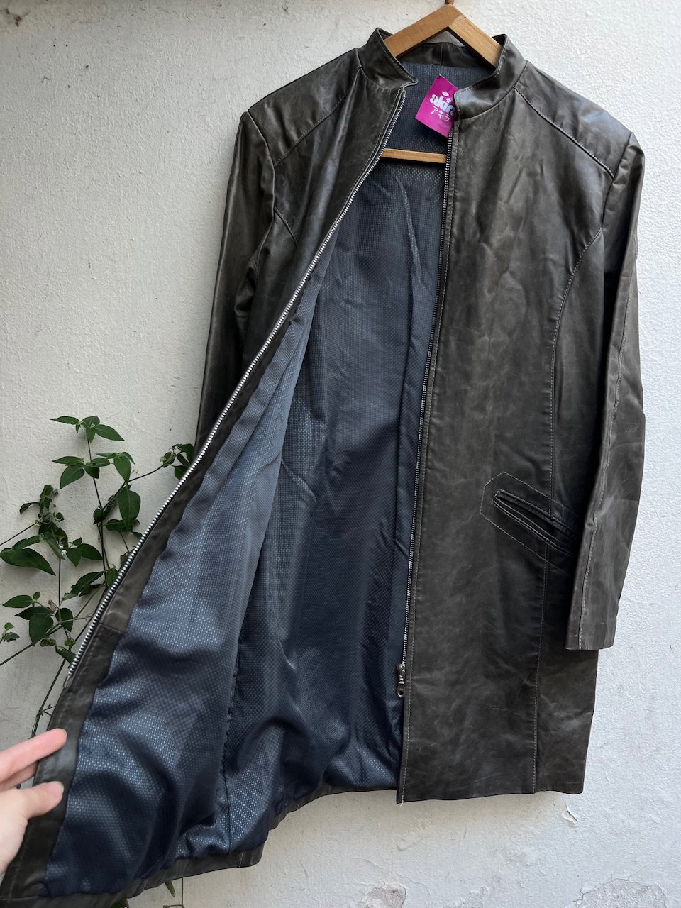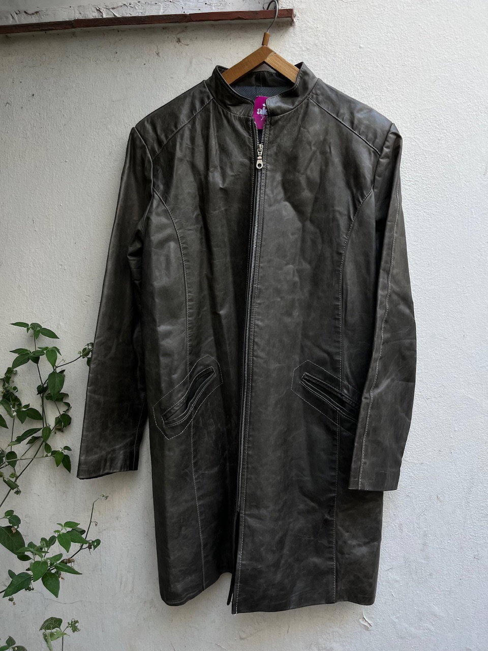 campera de cuero genuino tipo tapado. es de los 00s cuenta con cierre funcional en el frente y bolsillos. talle m/l aprox. ver algunos detalles específicos en fotos