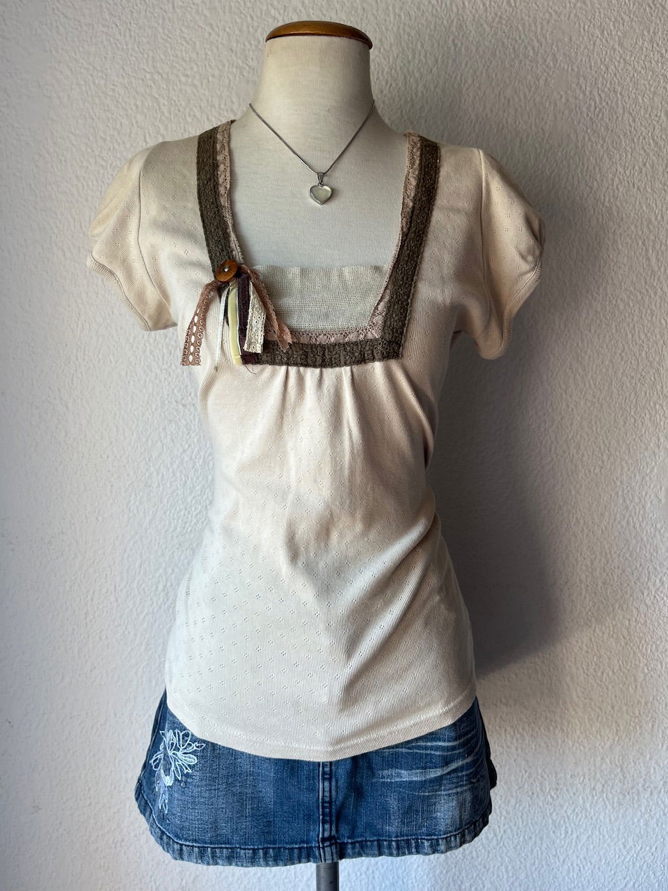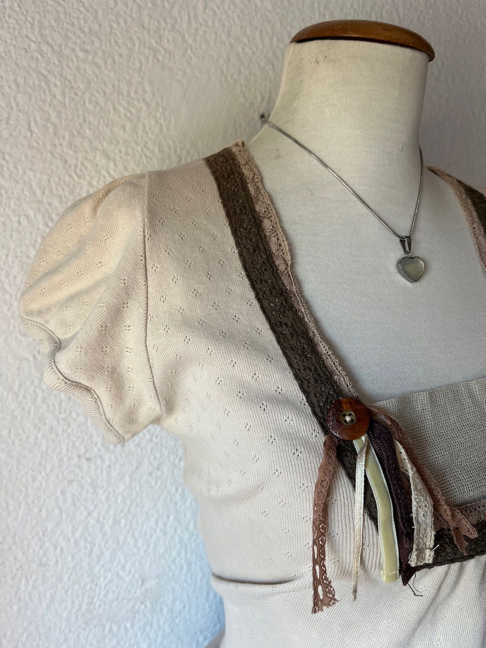 hermoso top premod, marca española ubicada en madrid. talle m aprox. es de un algodón labrado hermoso con detalles de guardas y boton
