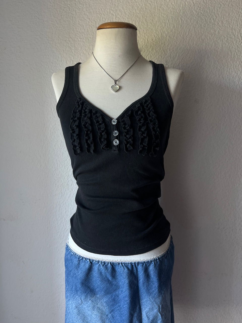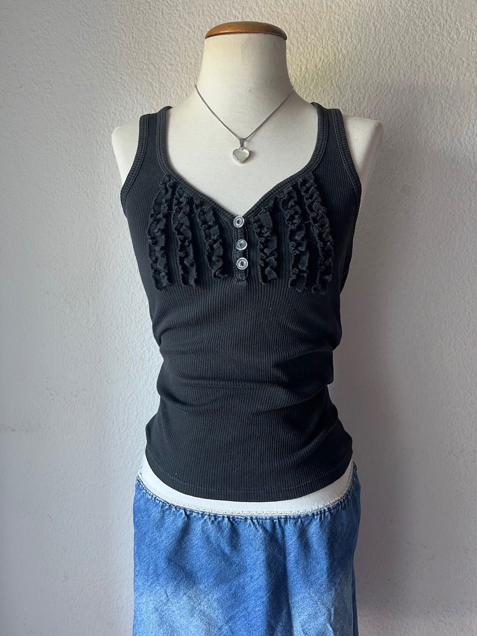 tank top hermoso con bolados y botones de nacar