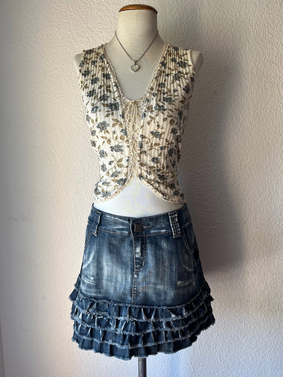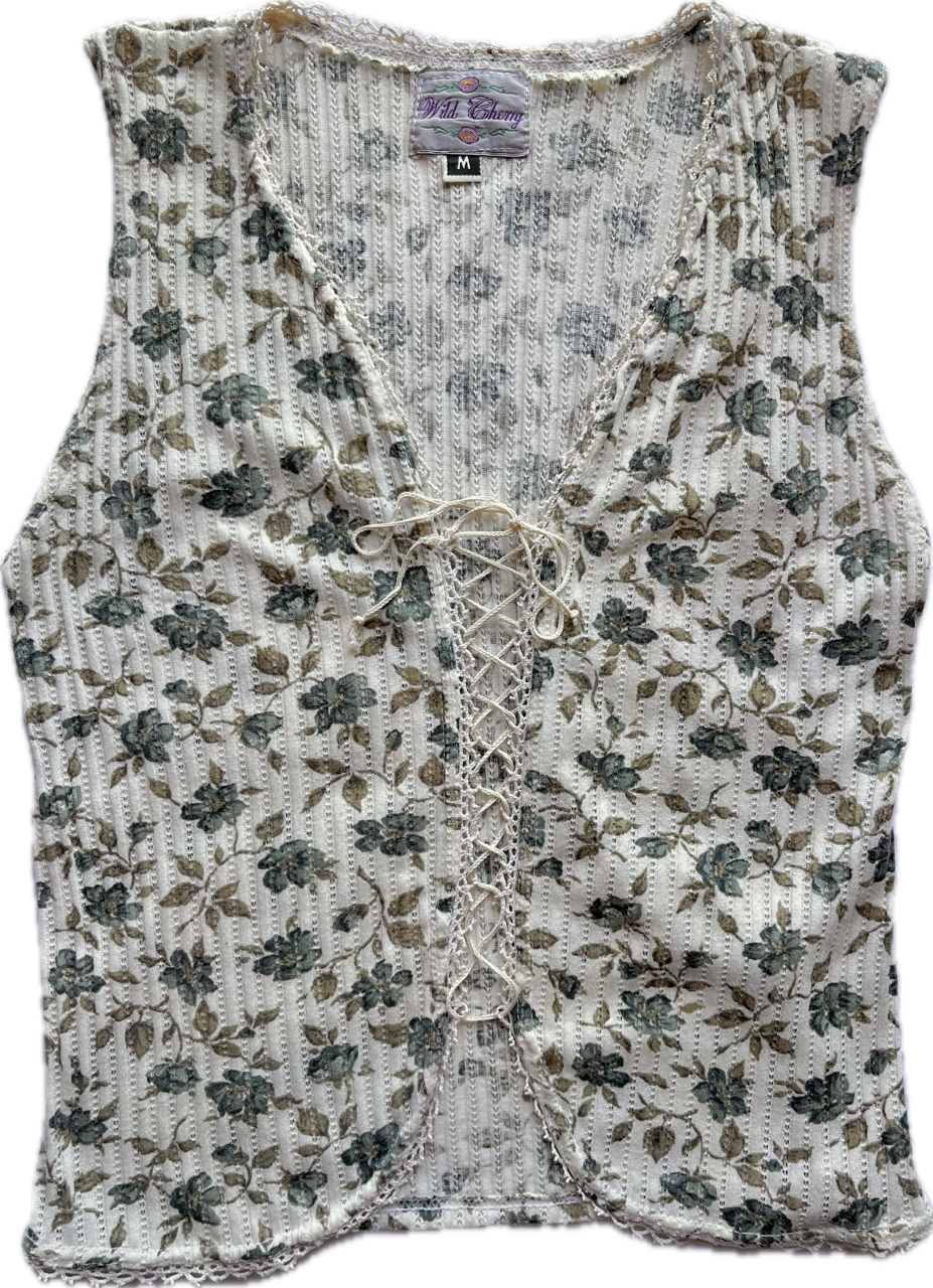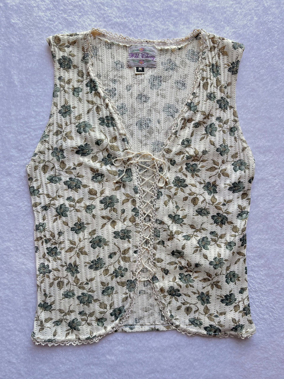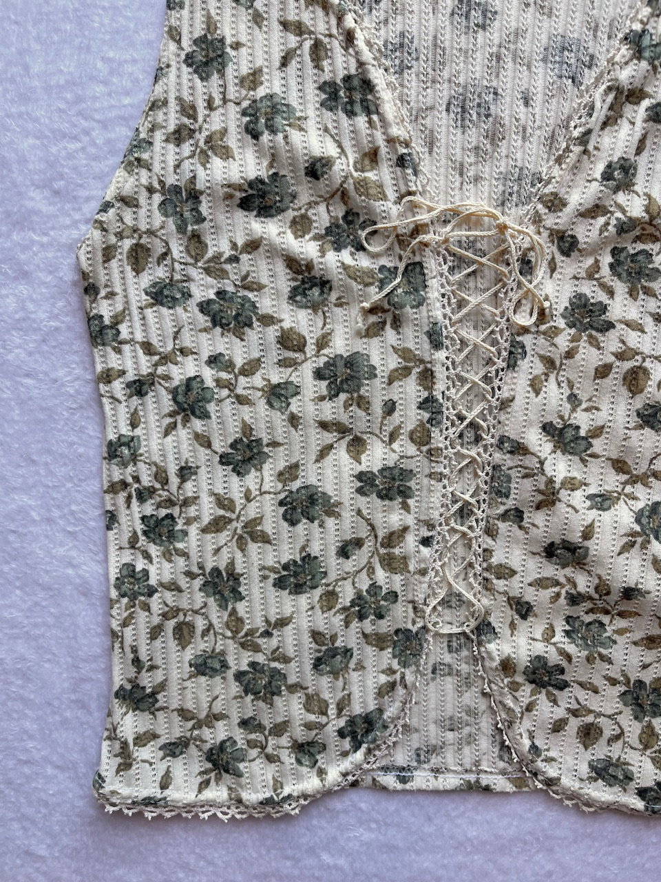 top original de los 90s con escote abierto que se puede ajustar a gusto, talle m
