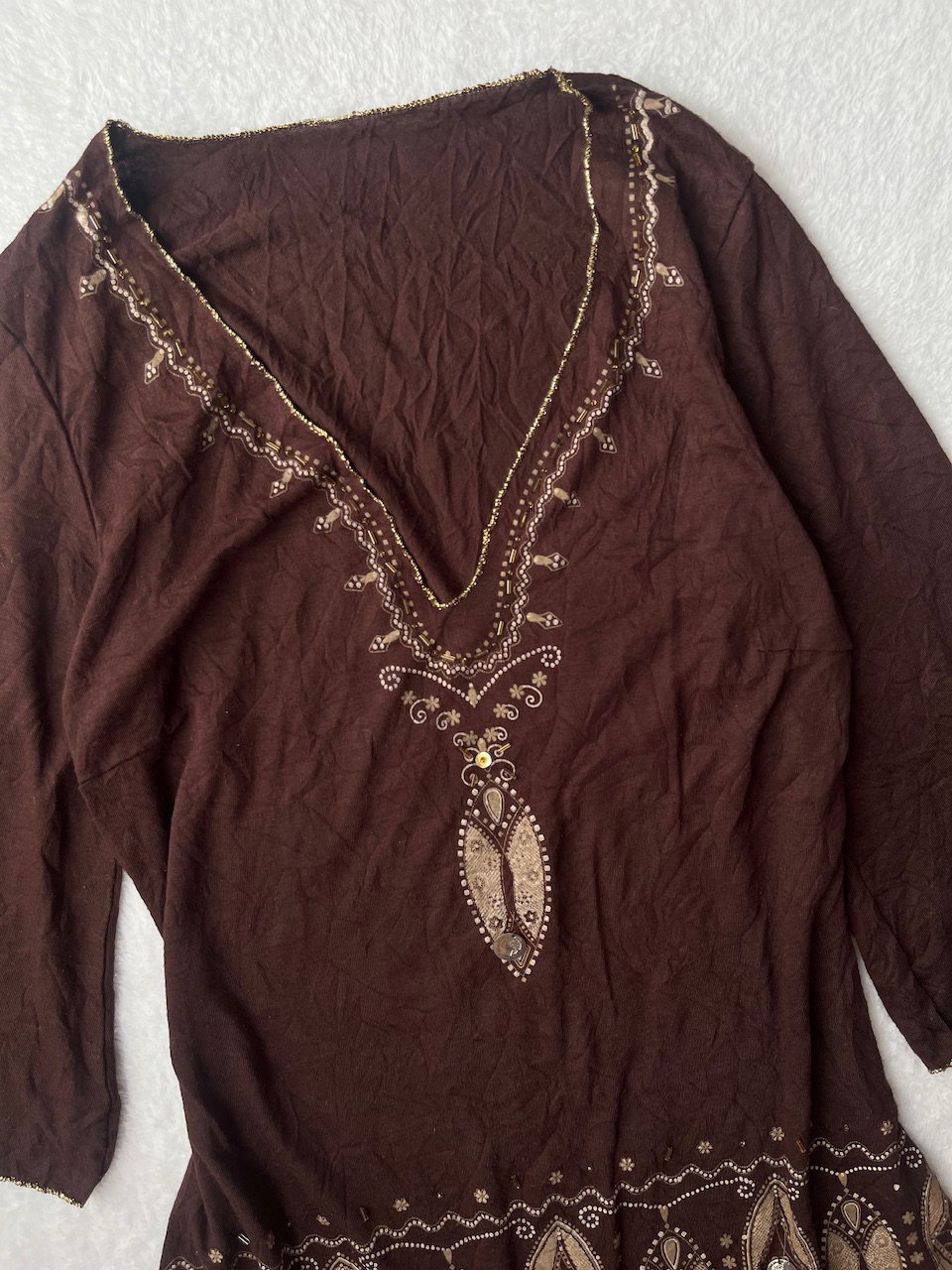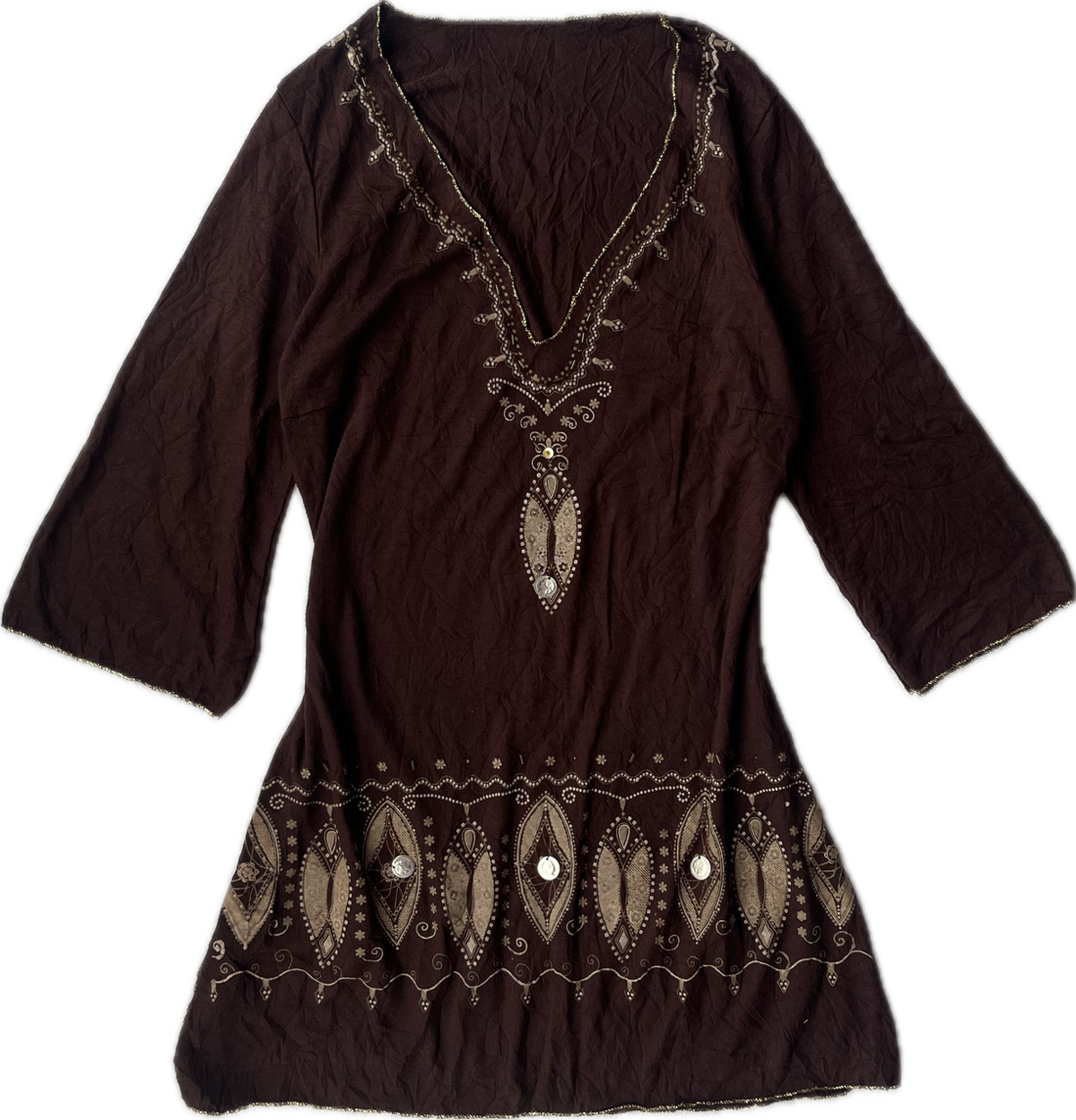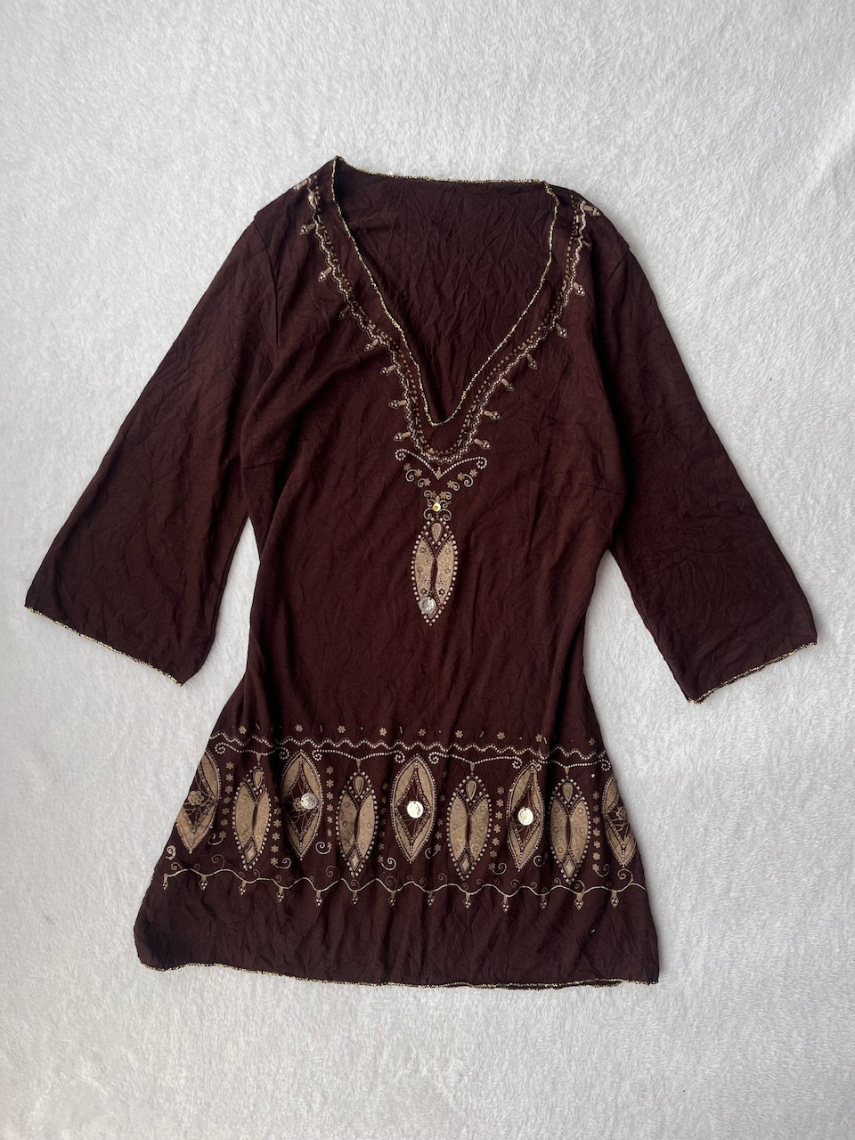 top boho hermoso con mostacillas y bordados, detalles en lurex. talle m aprox. como nuevo sin uso