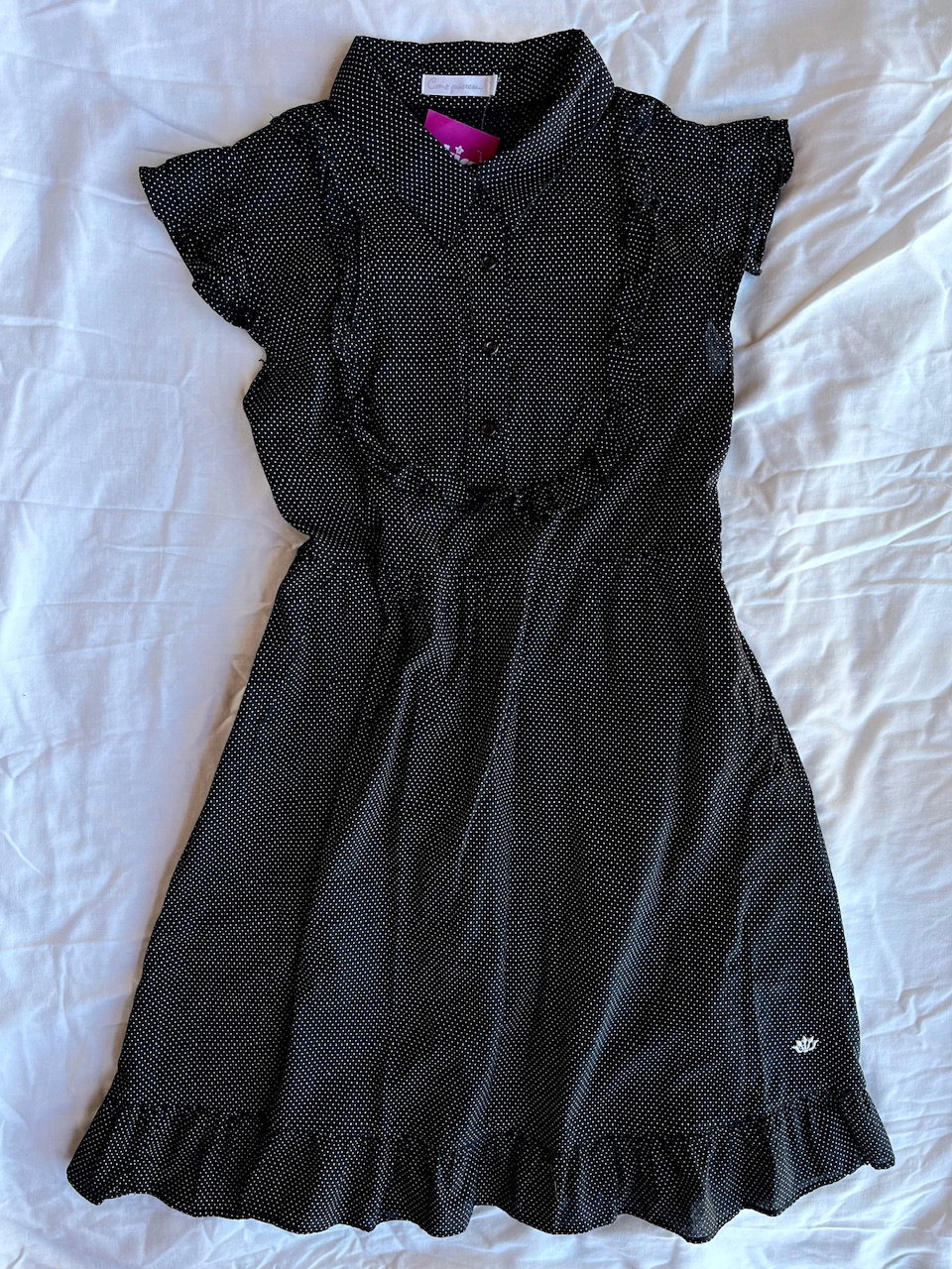 vestido a lunares hermoso de la marca como quieres, cuenta con bolados y cintura entallada. las mangas son estilo princesa. se encuentra en perfecto estado como nuevo