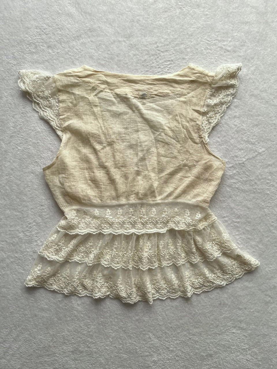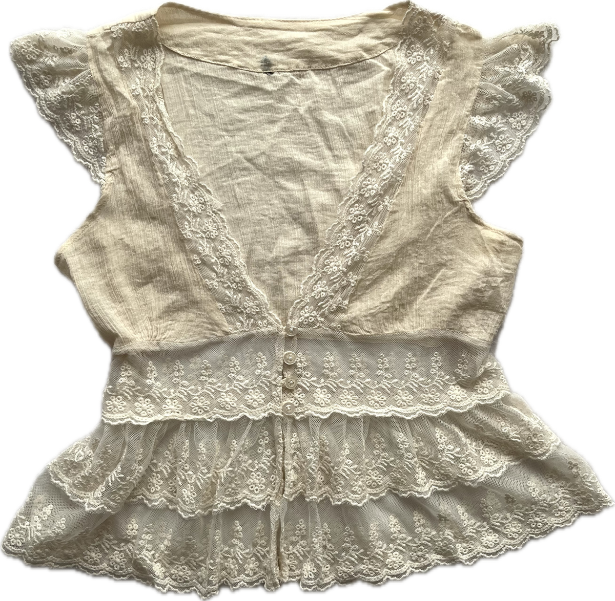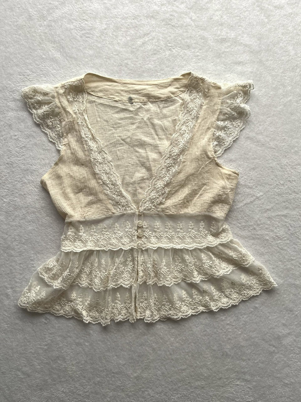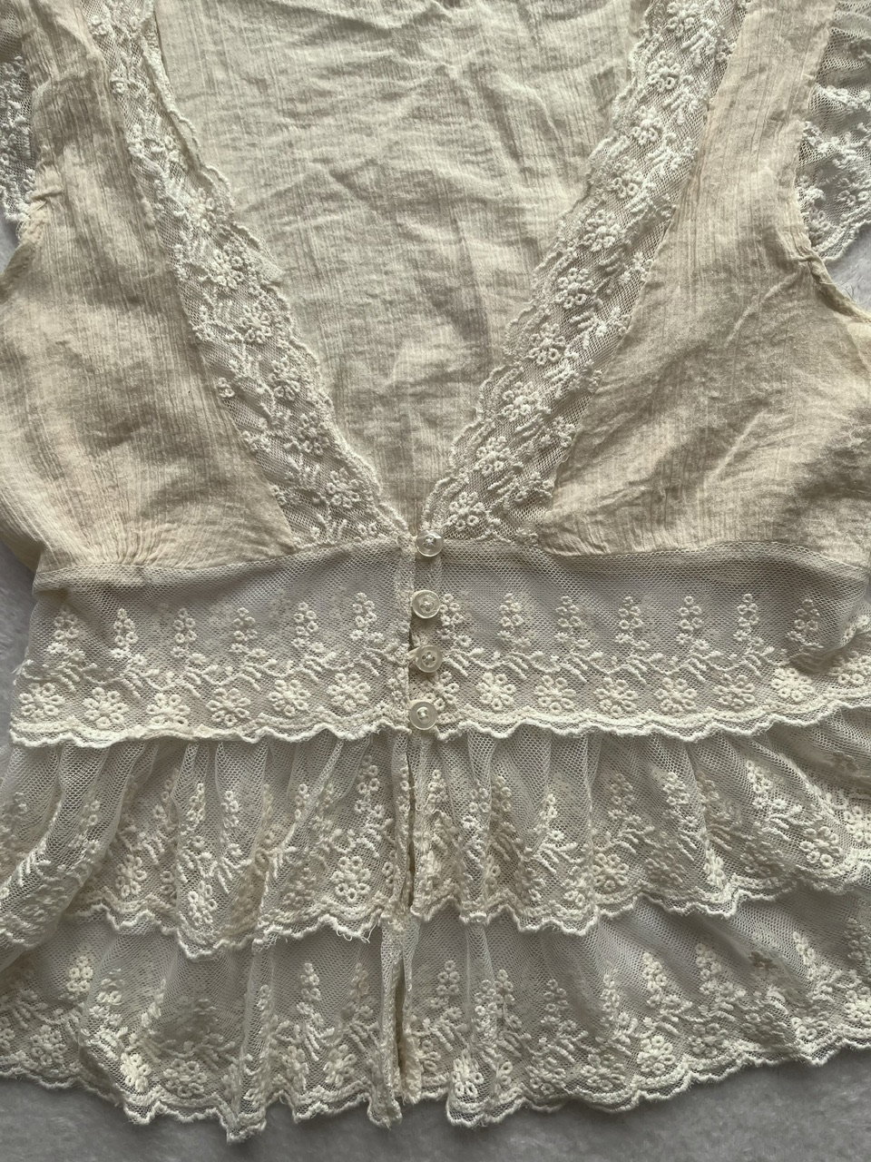 hermosa blusa de lino y broderie con botones a juego, tiene manguitas. talle m aprox. impecable