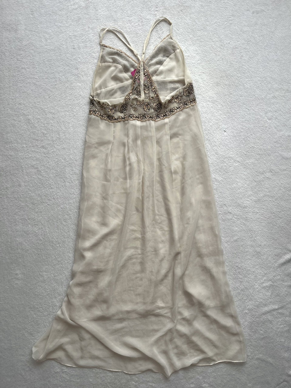 vestido camisolín de doble gasa con detalle de guarda estampada en microtul (forrado también) talle s/m