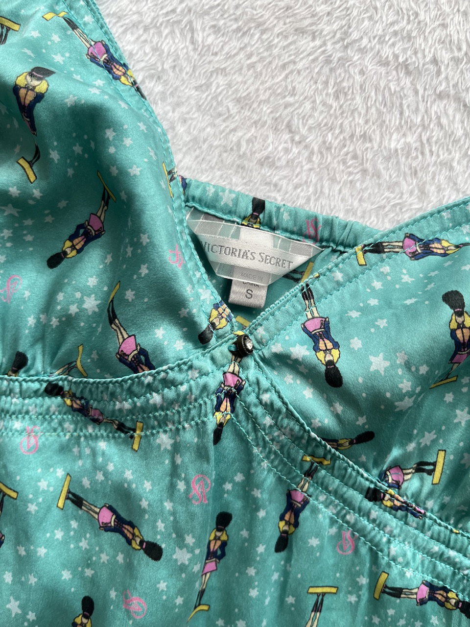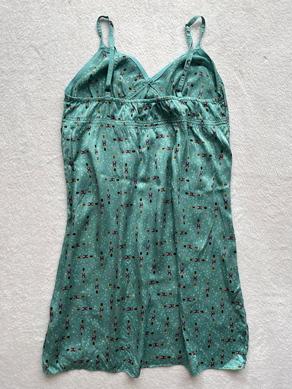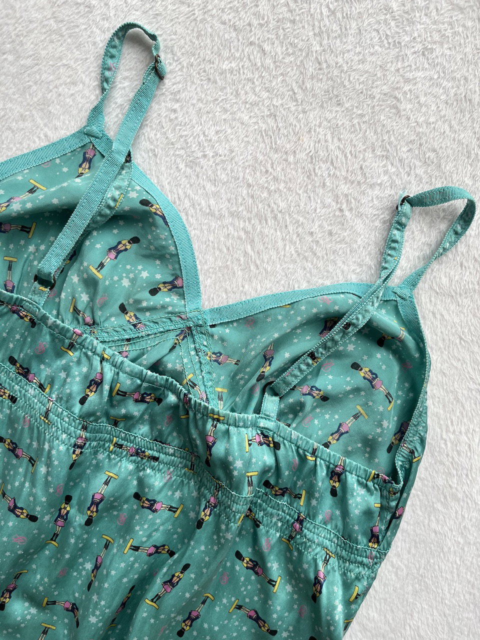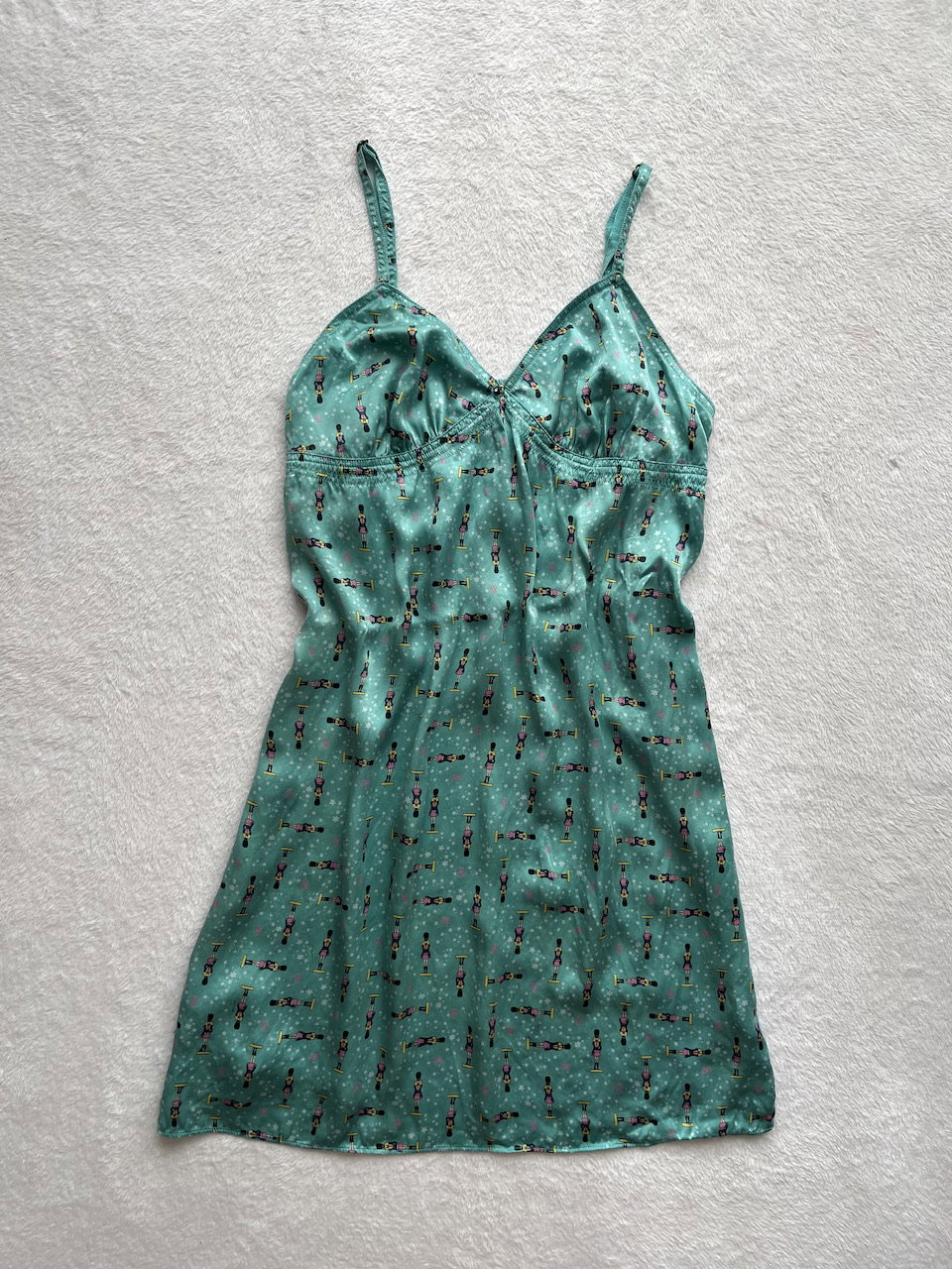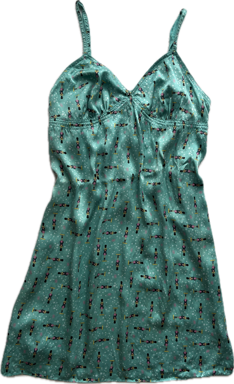 vestido camisolín original de los 90s de raso estampado con detalles de encaje. talle L. nuevo sin uso