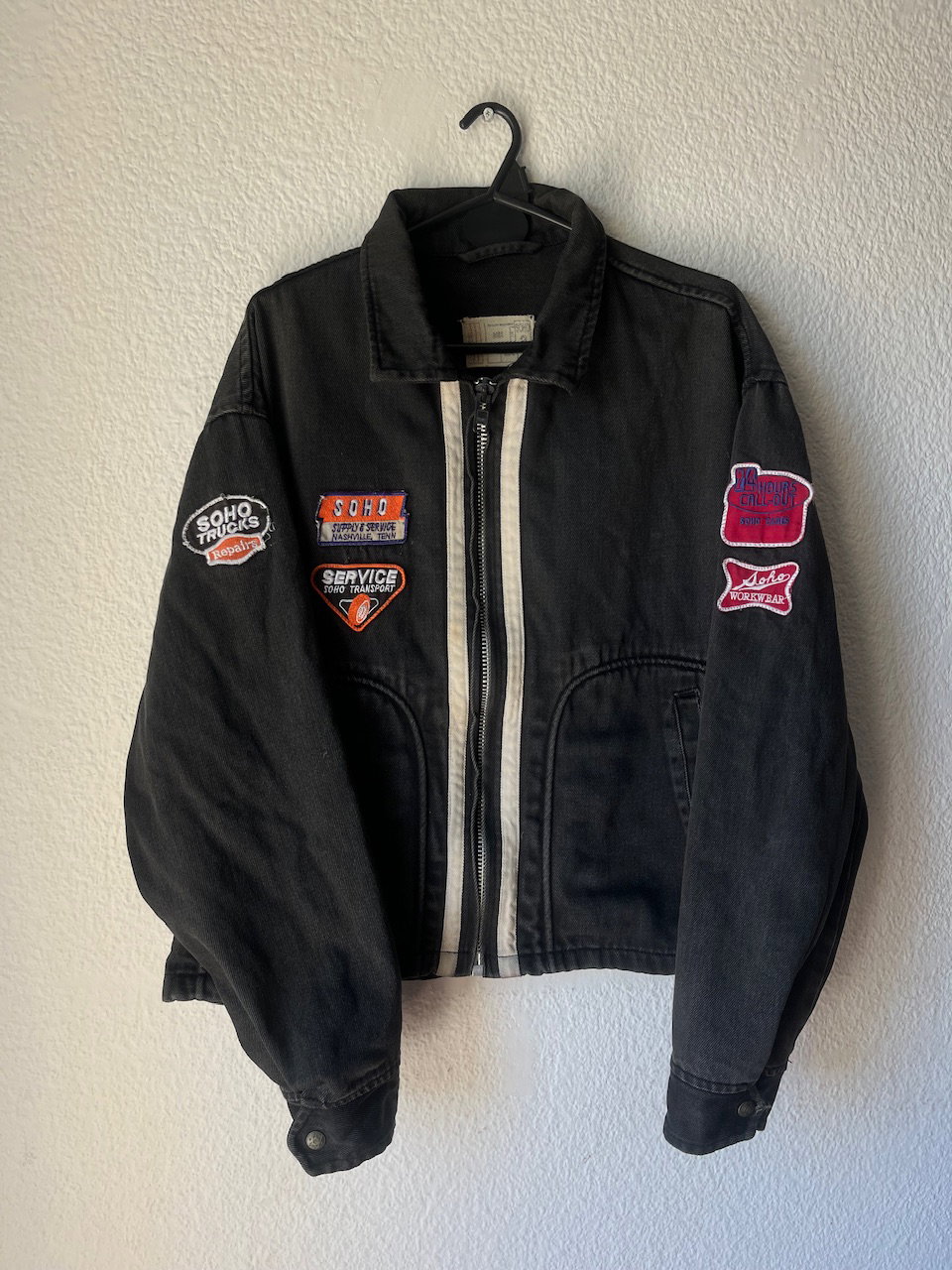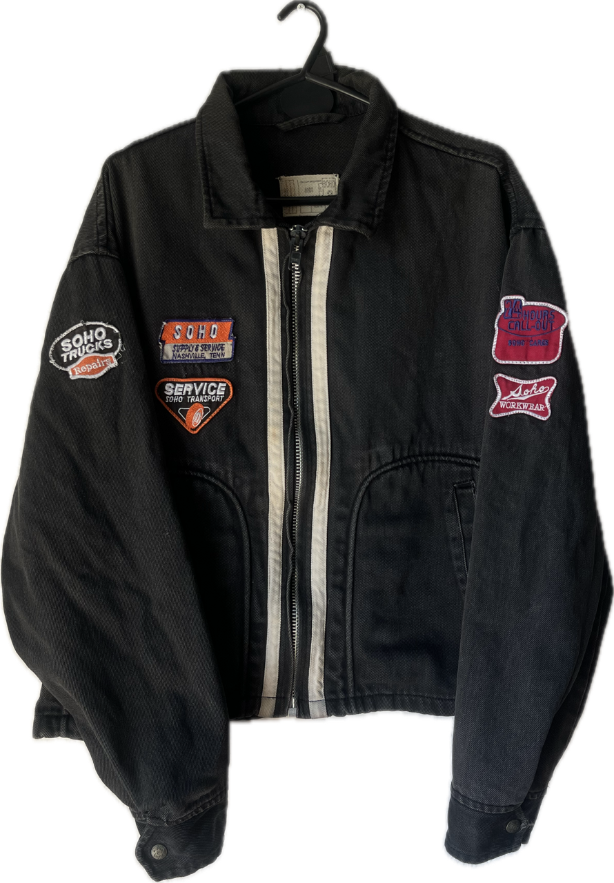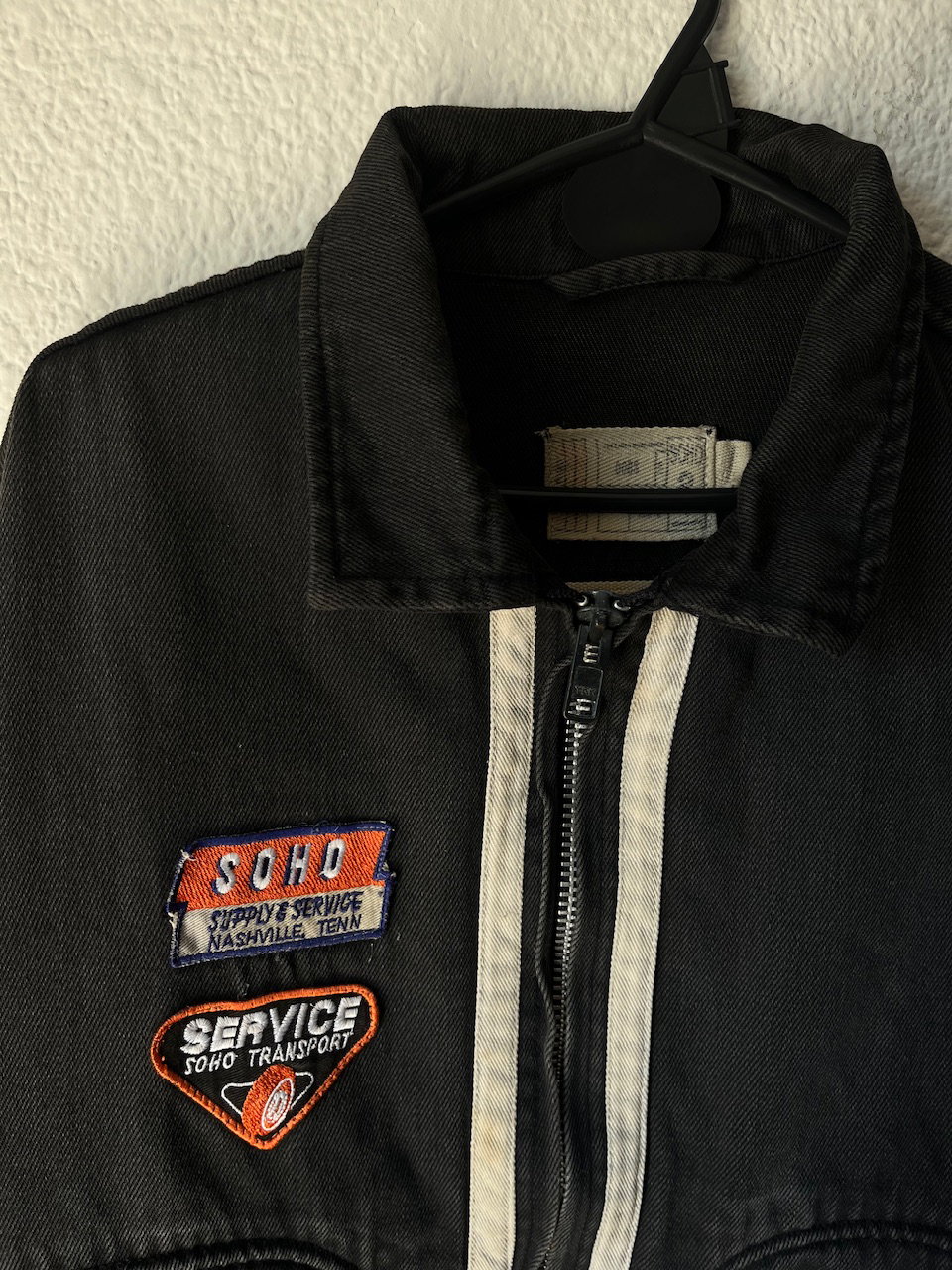 campera de jean marca soho original de inicios de los 90s de la línea "work wear". talle L aprox. es corte estilo bomber y tiene bolsillos, se puede ajustar en la cintura. es de un jean pesadito