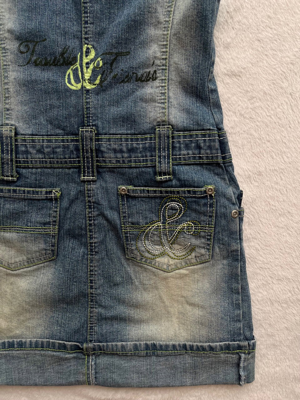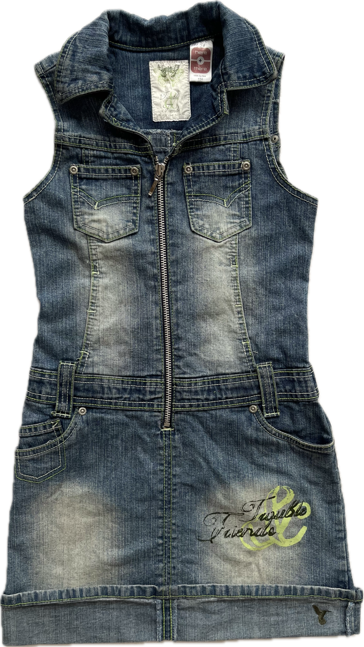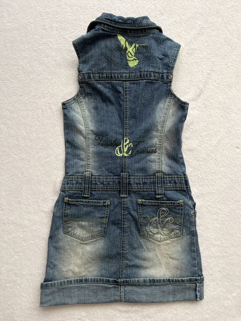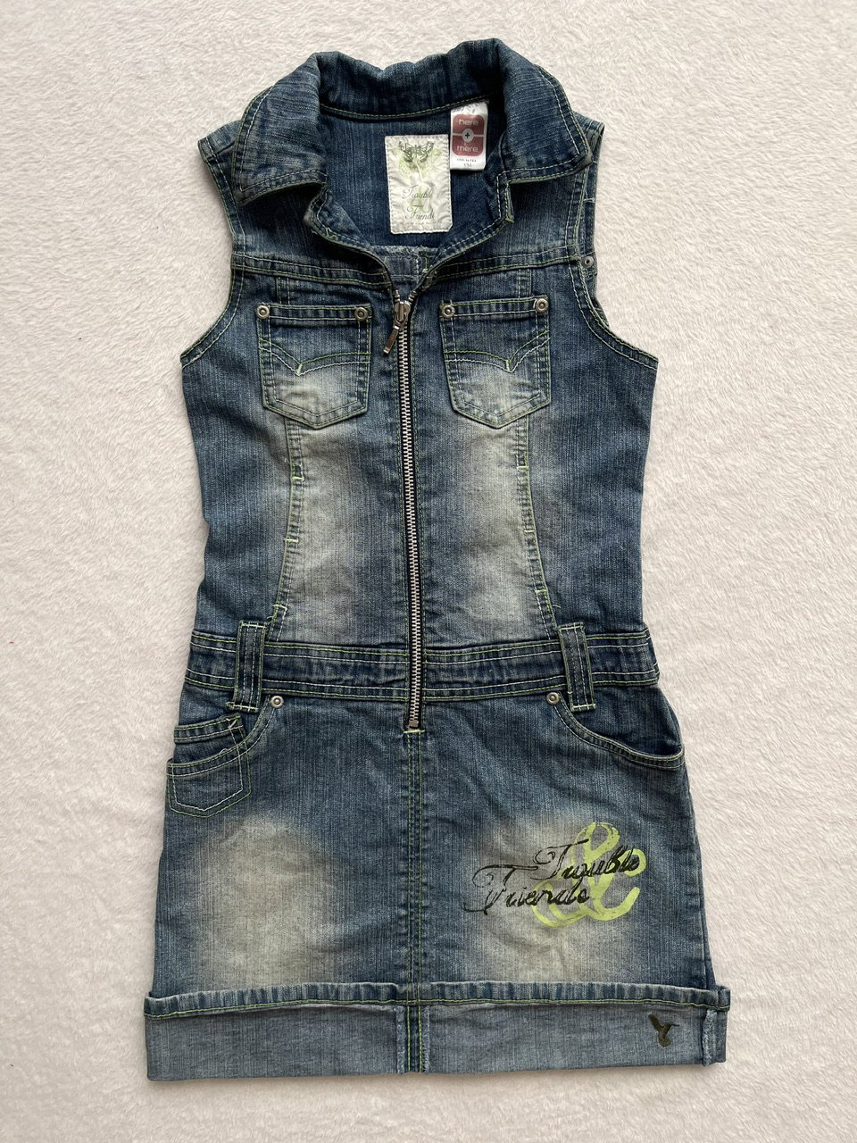 vestido de jean increíble es entallado, con cuello camisa y cierre funcional. cuenta con pasa cinto y bolsillos. talle xs nuevo sin uso