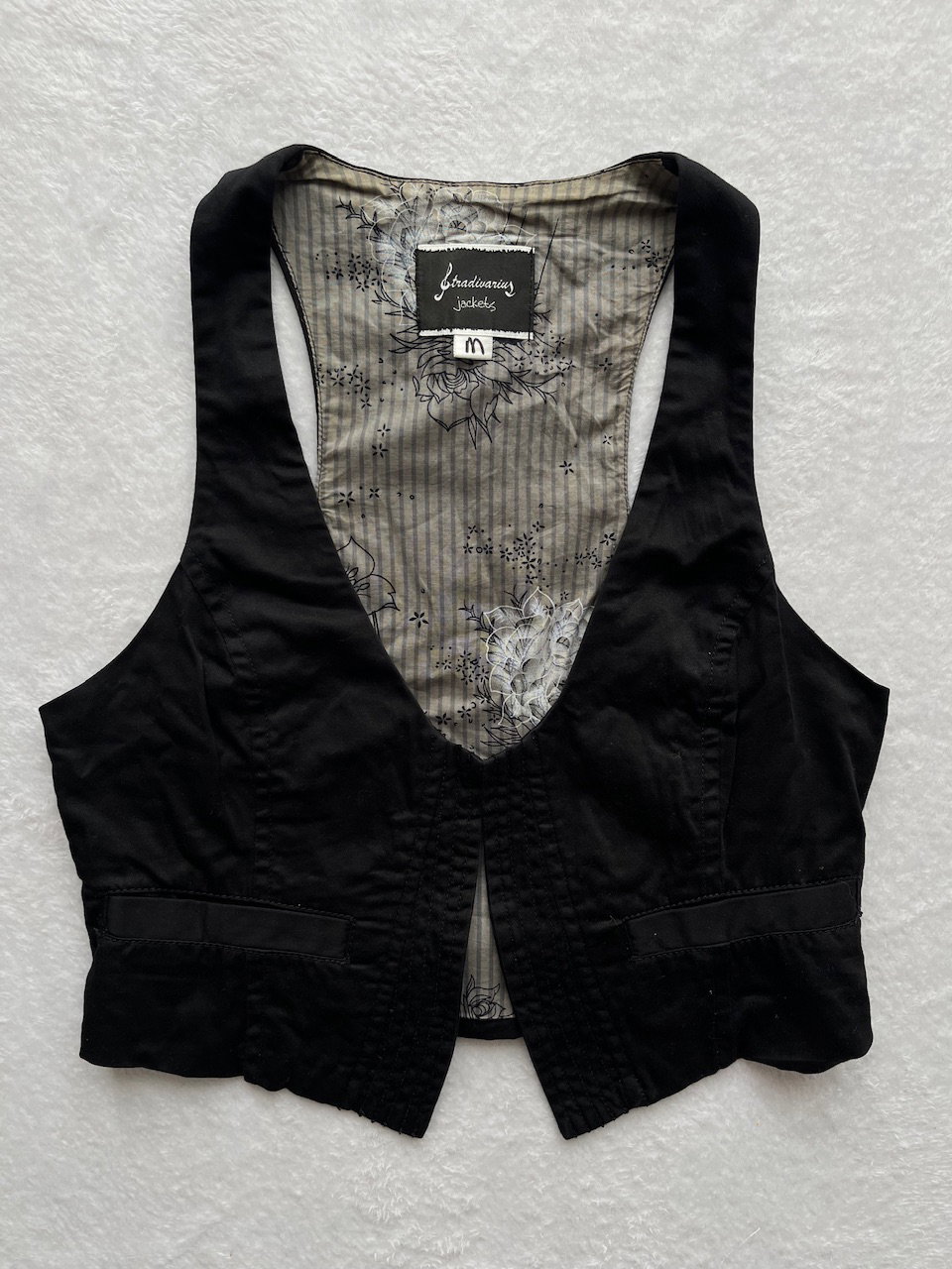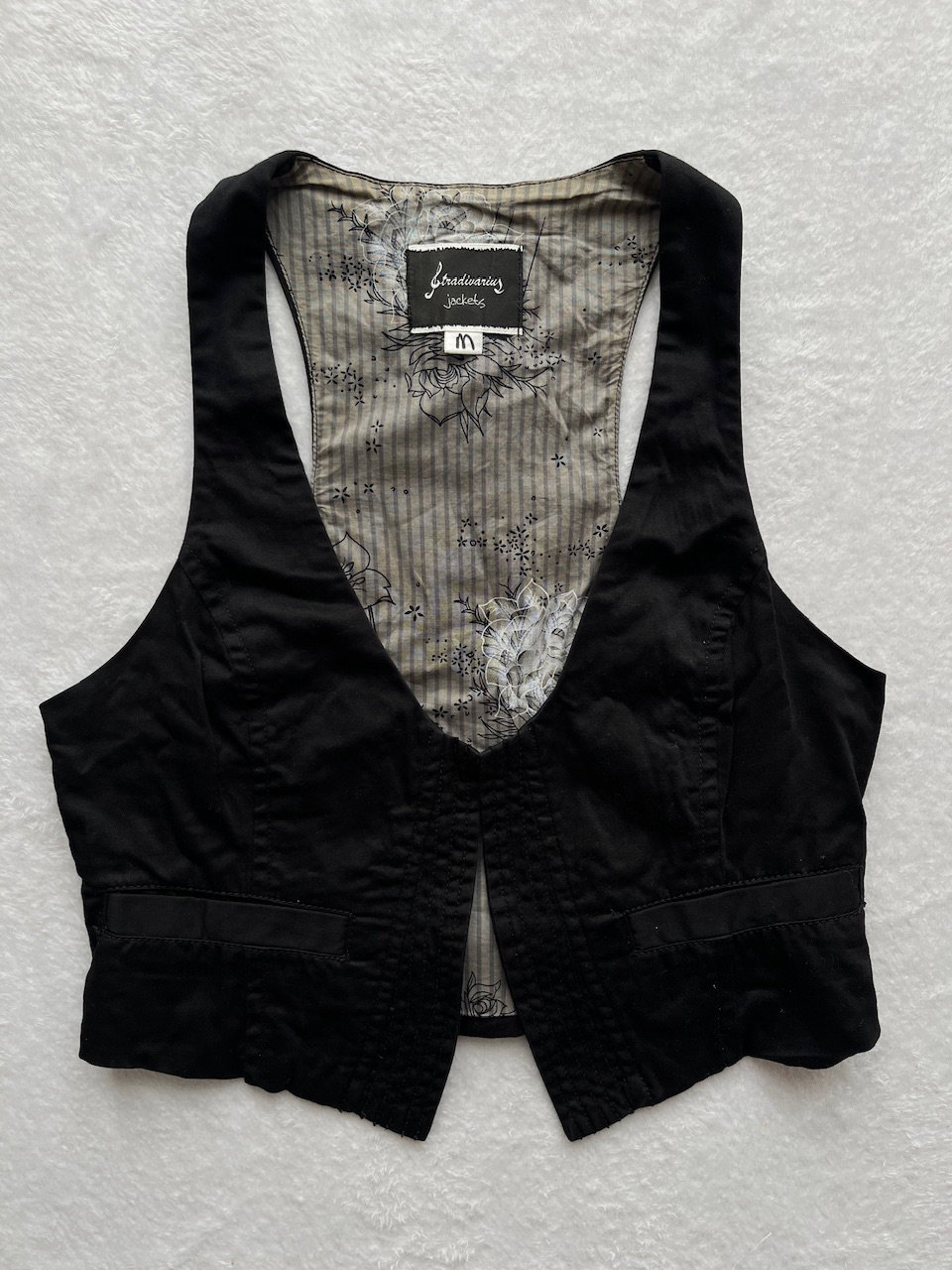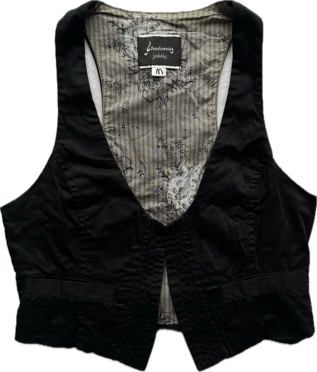 chaleco entallado original de los 00s de la marca española "stradivarious" en impecable estado de conservacion, talle xs aprox. cuenta con un boton interno para abrochar en el frente