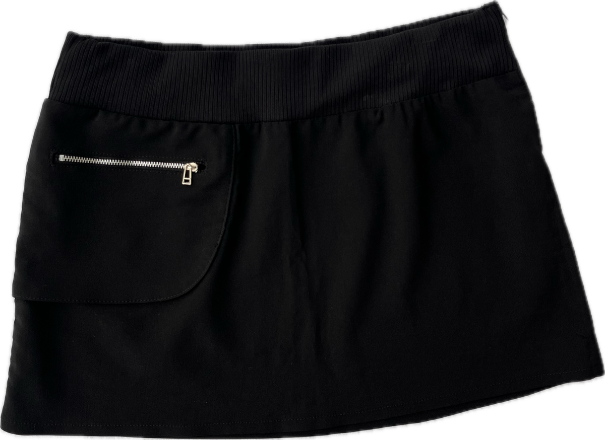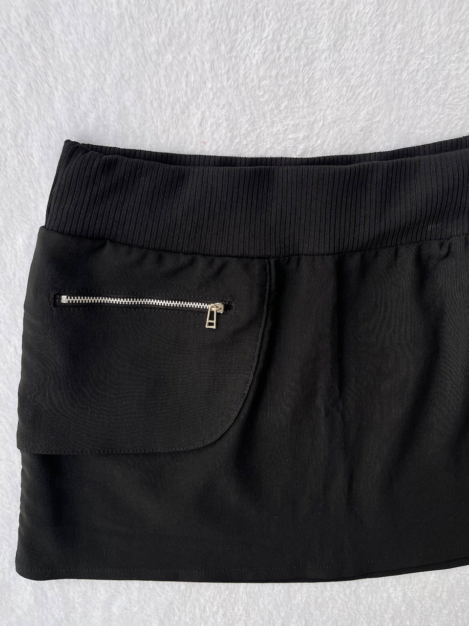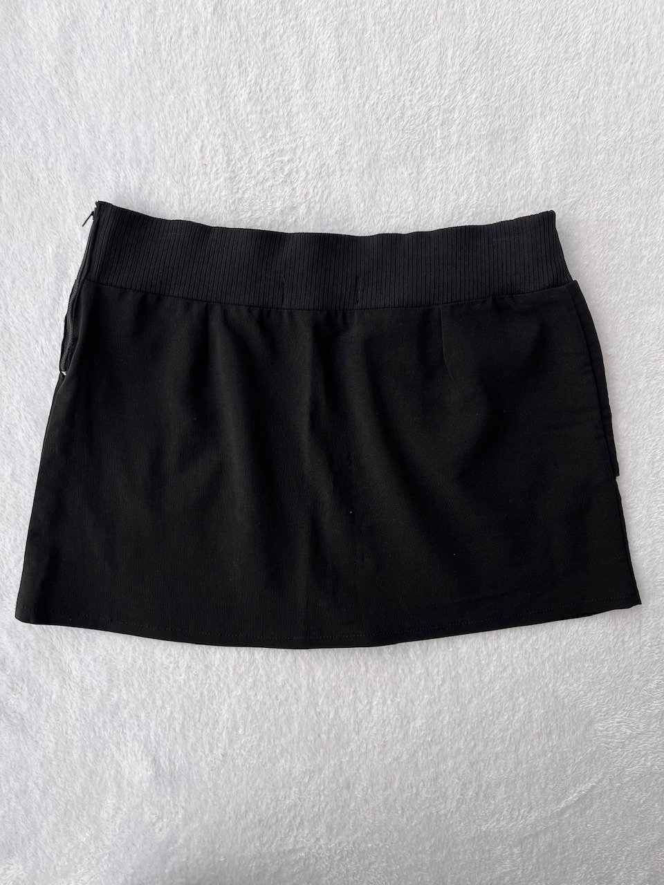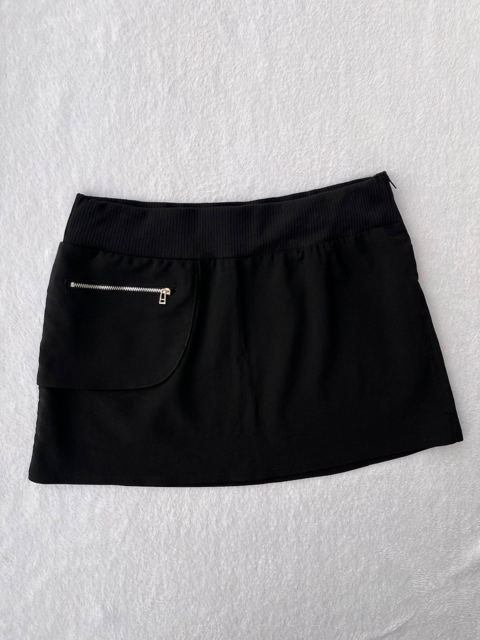 mini muy rocker/punky en color negro con cintura elástizada. es de gabardina. bolsillo funcional adelante. se accede a la prenda con un cierre lateral. talle 40 original de los 00s nueva sin uso