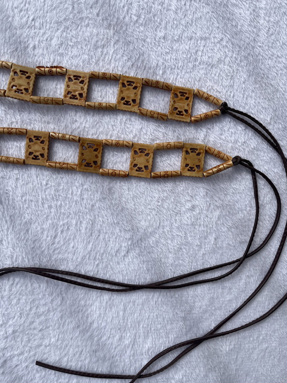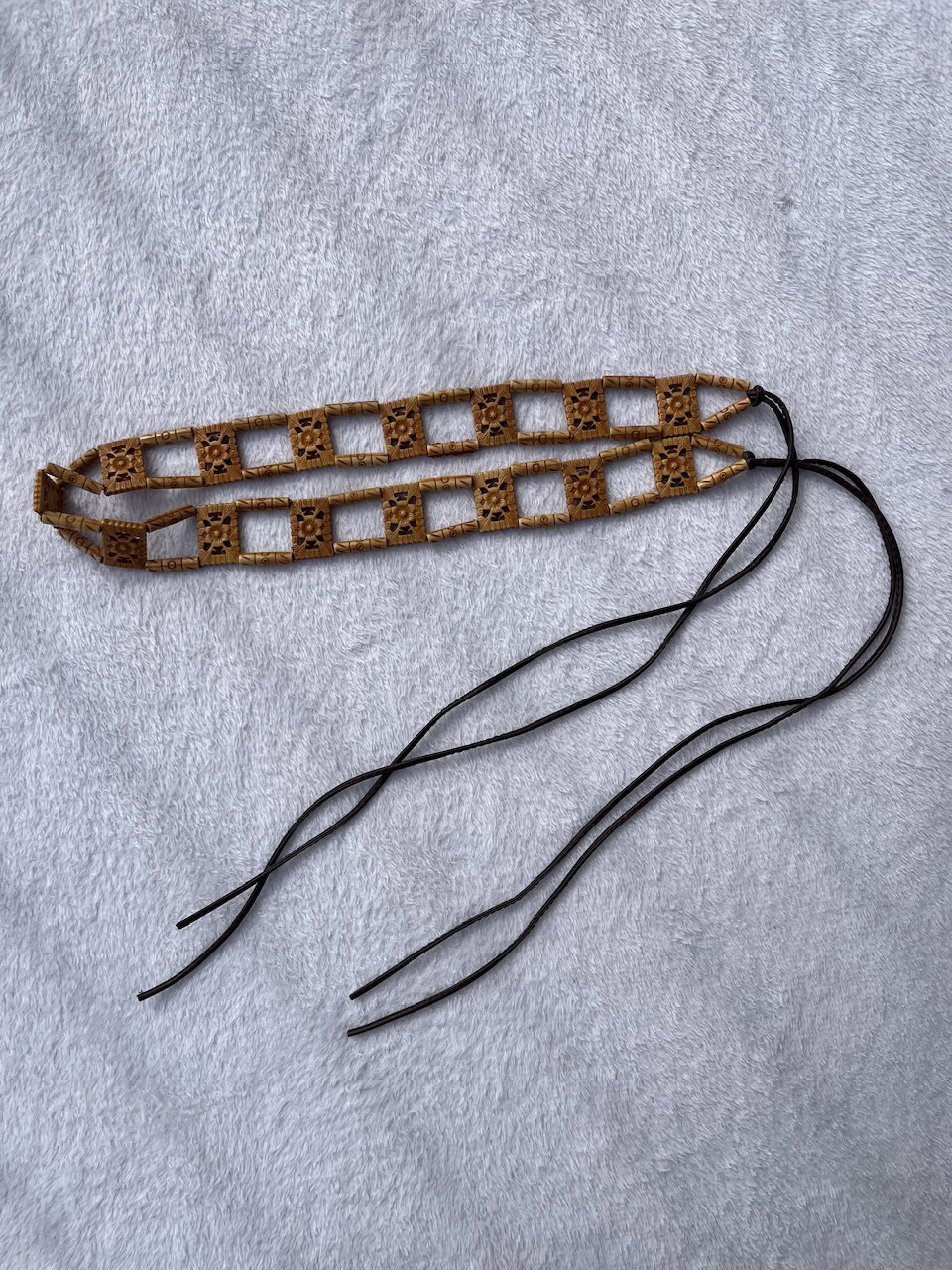 cinturón tipo caderin original de los 00s es vintage de mostacillas con detalles de tiras en cuero 180cm largo x 4cm ancho
