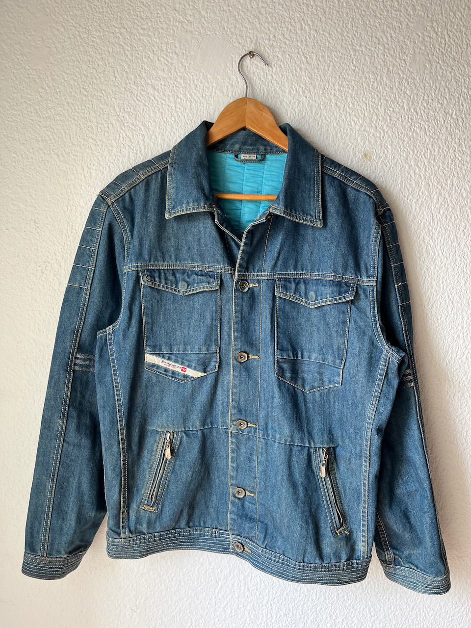 campera de jean original de la marca diesel en colaboración con adidas