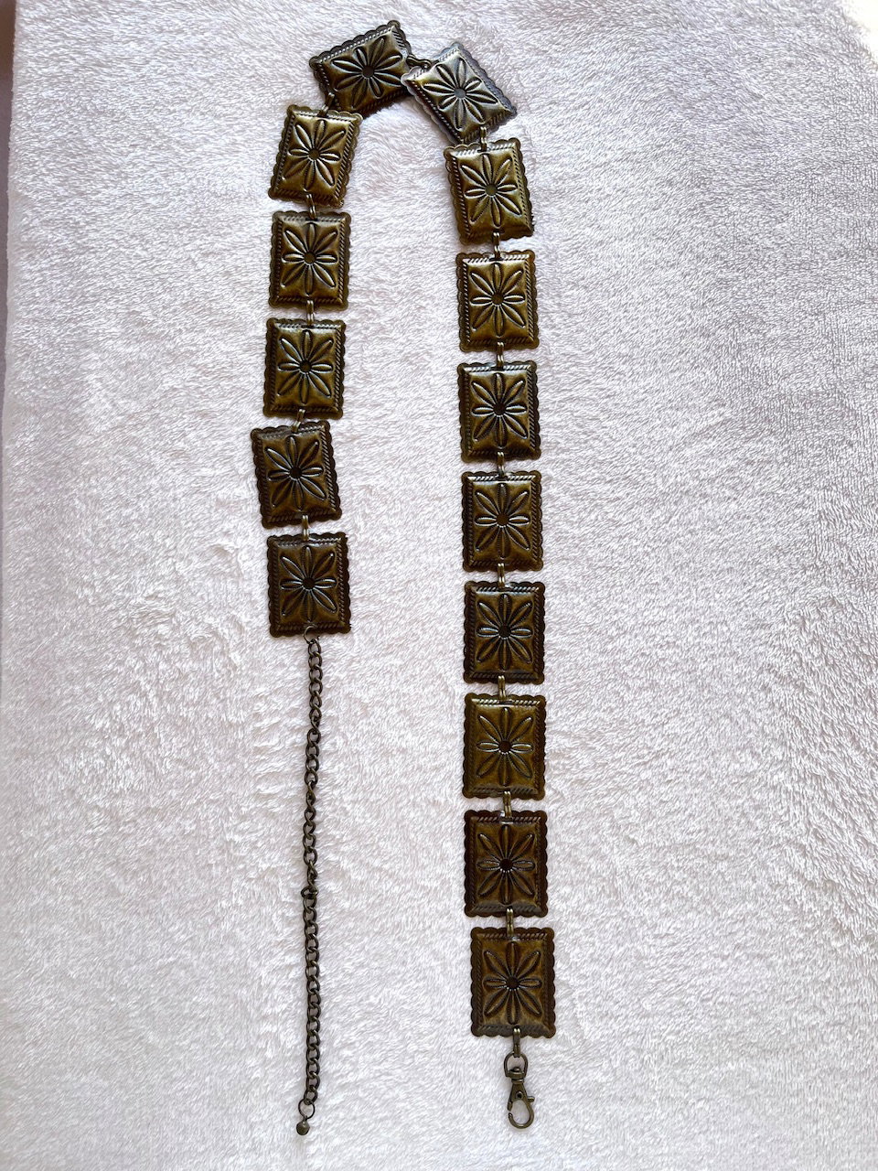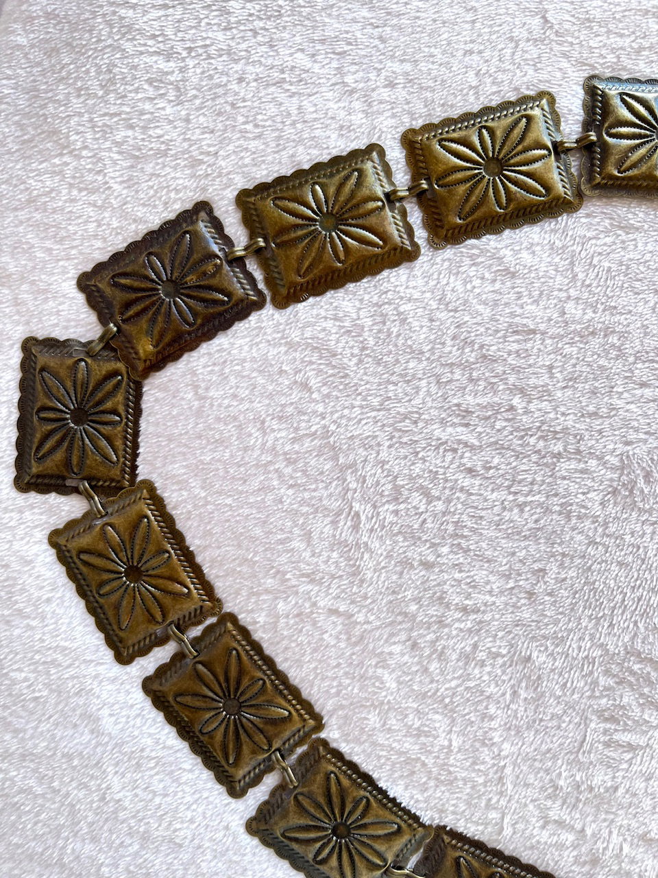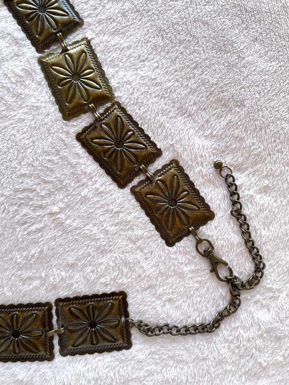cinturón tipo caderón metálico con flores labradas. es una preciosura