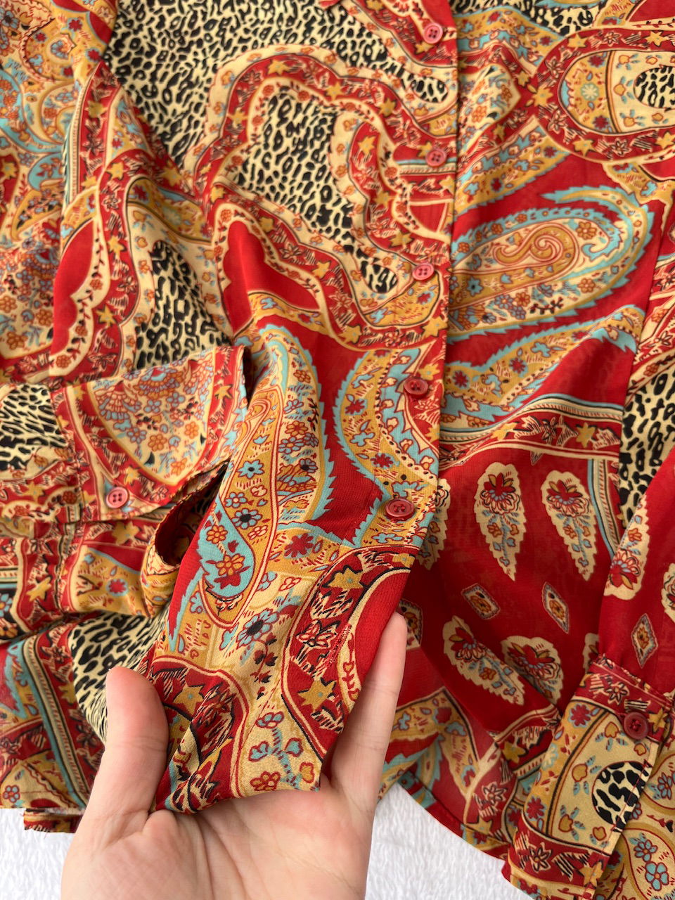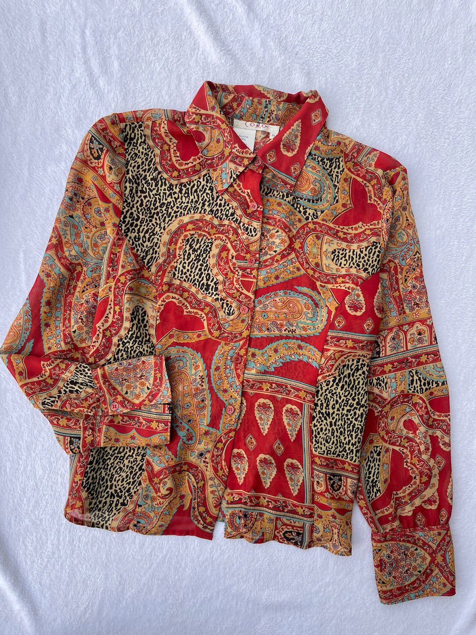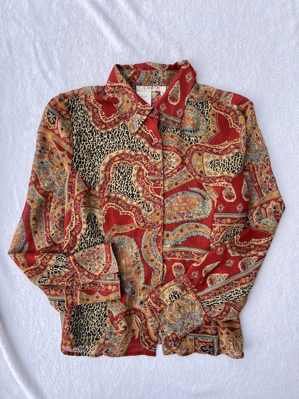 camisa de gasa, impecable estado. unico detalle pequeño enganche en una axila, puesto no se nota. es traslucida. talle L aprox