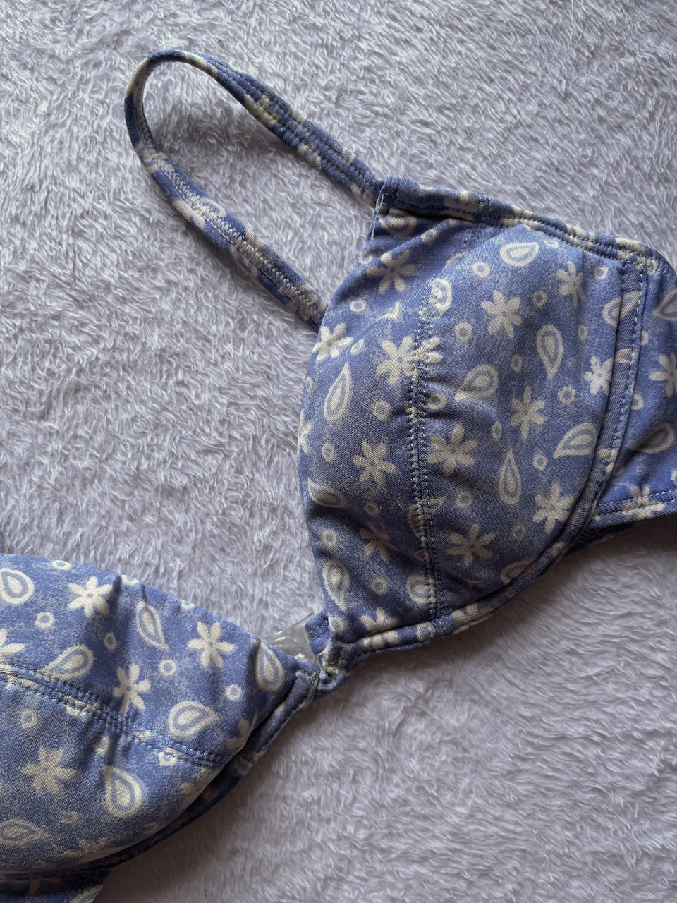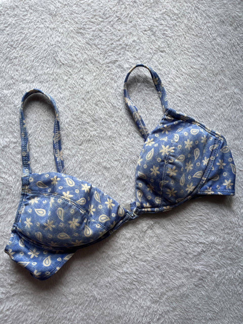 bikini original de los 90s, es de lycra y esta forrada. super linda calidad. hermoso estampado. color azul clarito.