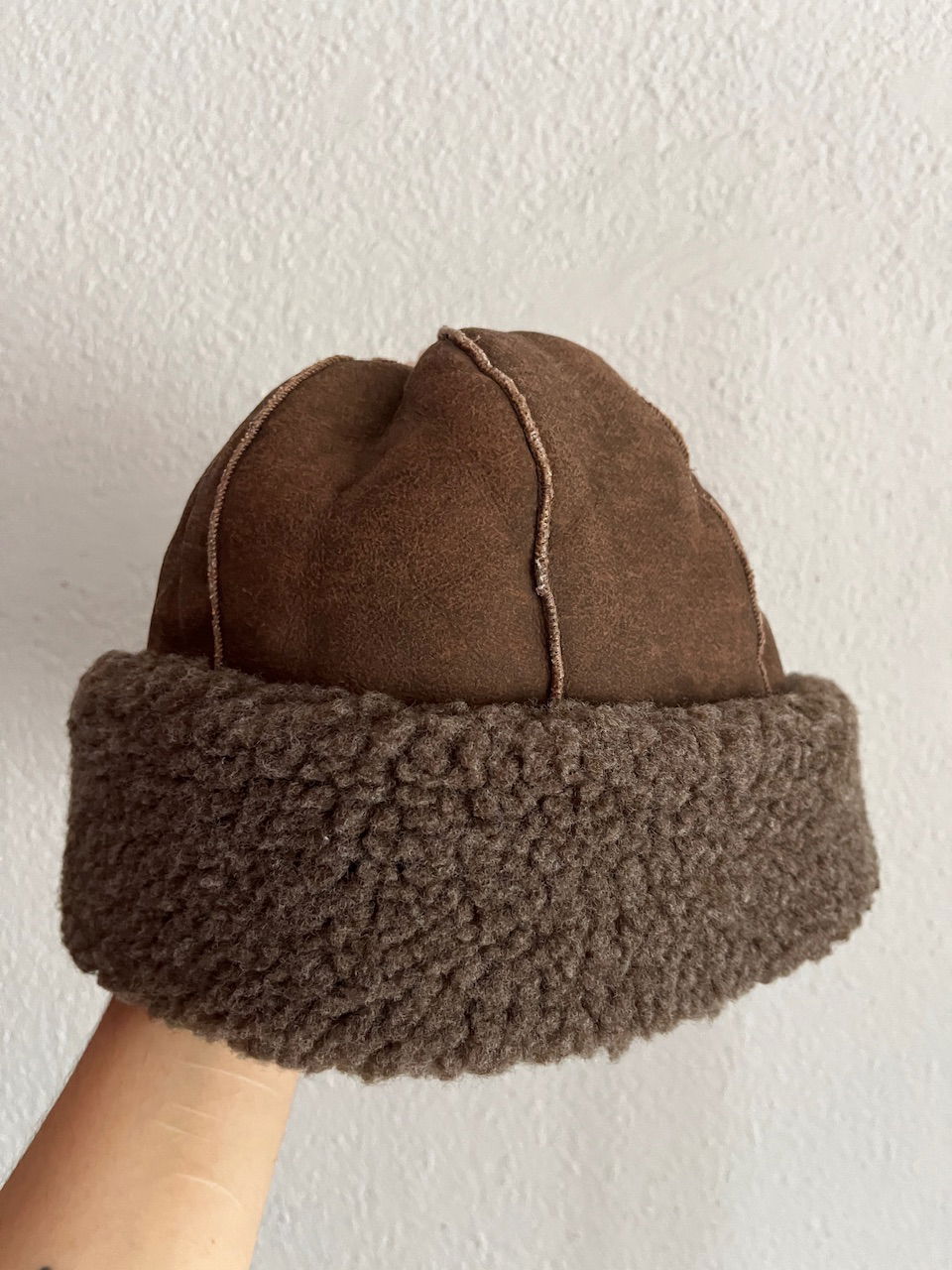 gorro de cuero y peluche