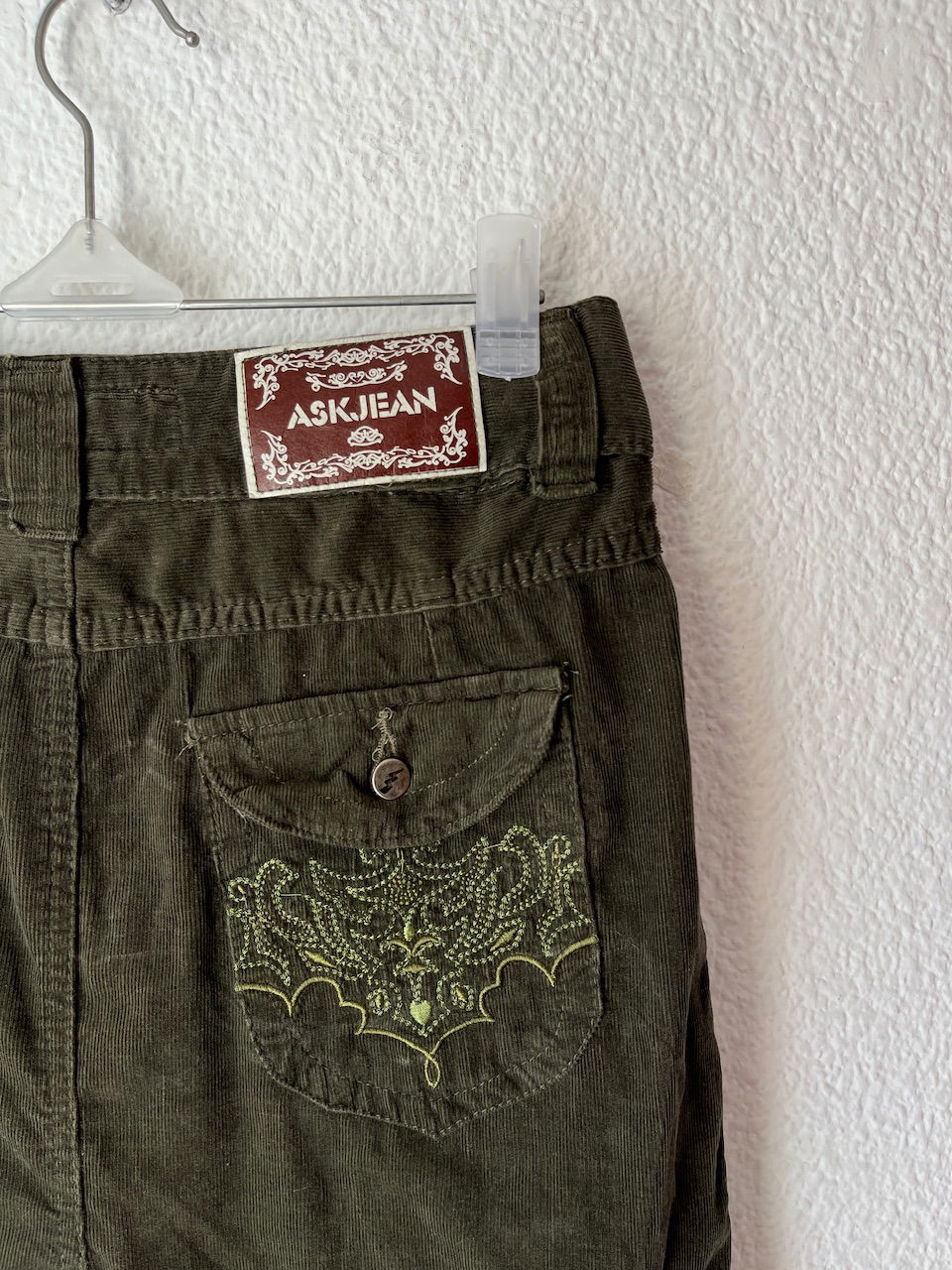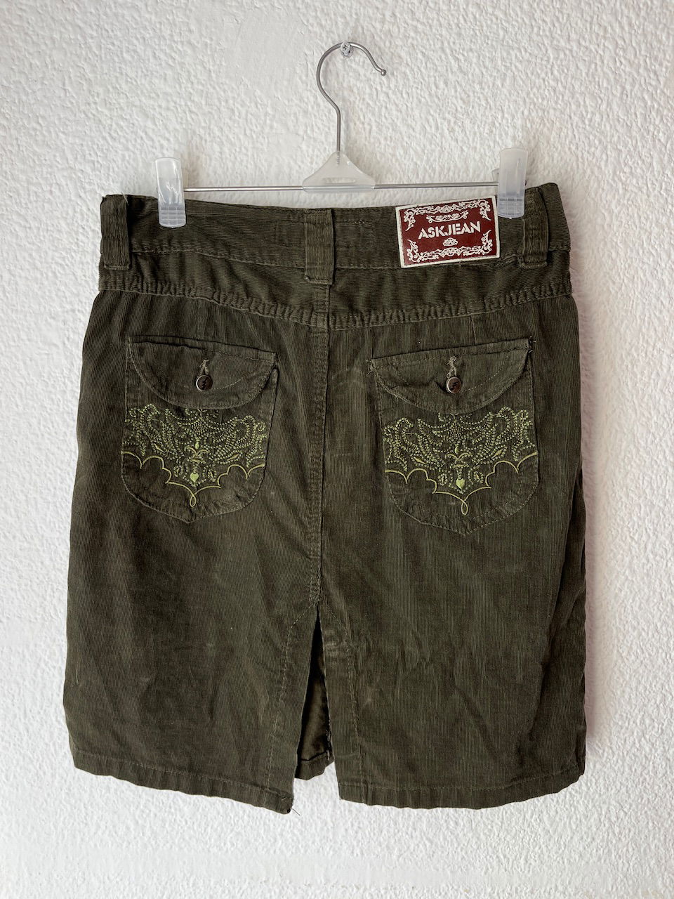 falda de corderoy con bolsillos bordados