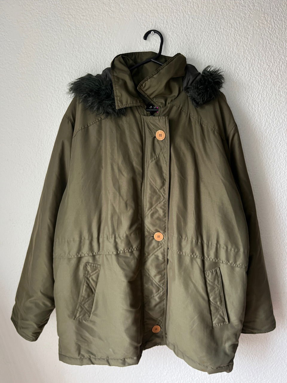 cuenta con cierre y botones, bolsillos delanteros amplios