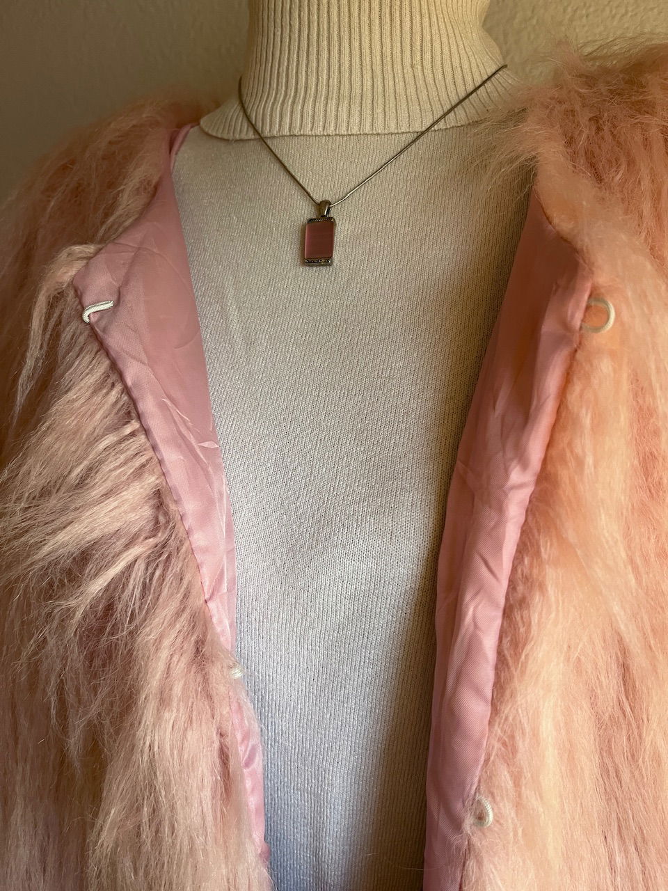 tapado de piel sintética en color rosa pastel con forreria de satin, cuenta con botoes ocultos y es de excelente calidad talle m aprox MEDIDAS (lado a lado) 55cm hmbr a hmbr 62cm ax a ax 70cm largo de manga 65cm largo