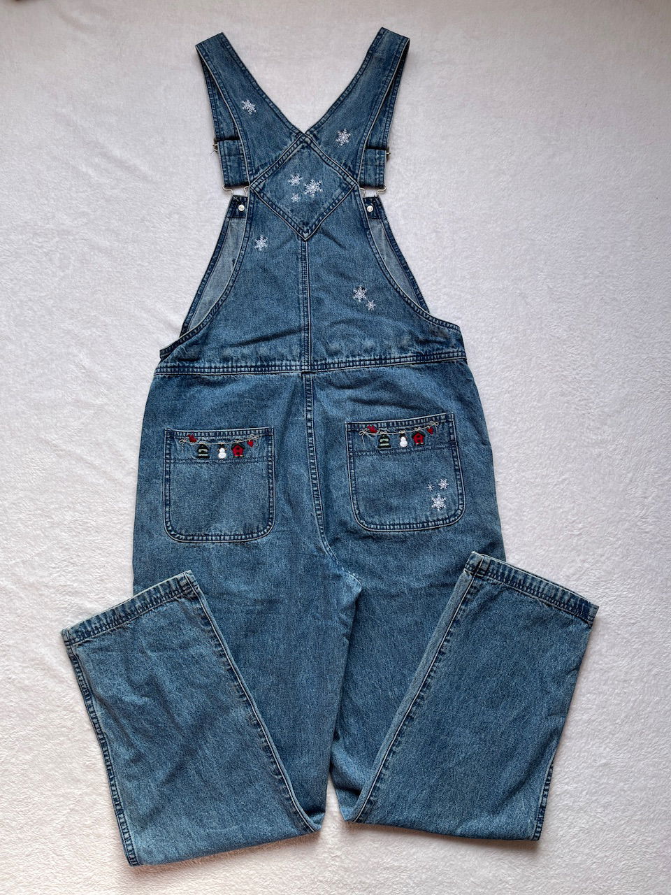 jardinero original de los 80s con doble estampa bordada nuevo de depósito. marca christopher & banks talle 44 aprox MEDIDAS (lado a lado) 60cm tiro 54cm cadera 45cm cintura largo desde la pechera 132cm