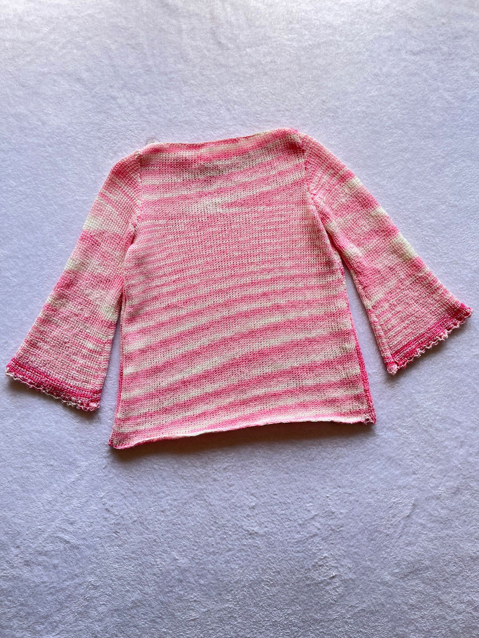 swtr de hilo en degrades de rosa con apliques en el cuello y mangas acampanadas como nuevo MEDIDAS (lado a lado) 35cm hmbr a hmbr 50cm ax a ax 58cm largo de manga 64cm largo total