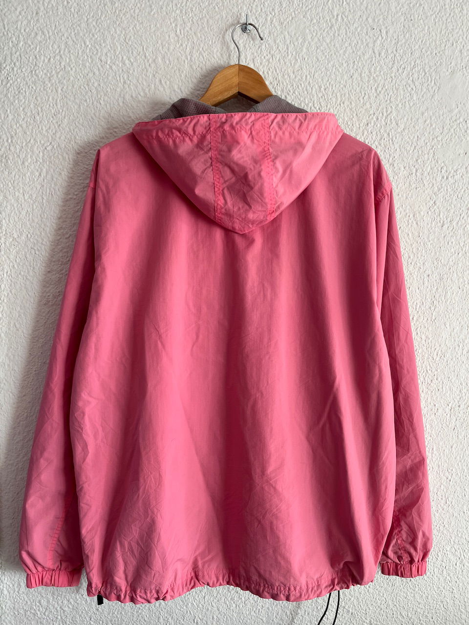 buzo rompevientos impermeable, con capucha y bolsillos con cierres, se puede ajustar en la cintura. impecable estado nuevo de depósito. talle L de hombre o xl de mujer MEDIDAS (lado a lado) 57cm hmbr a hmbr 65cm ax a ax 66cm largo de manga 73cm largo