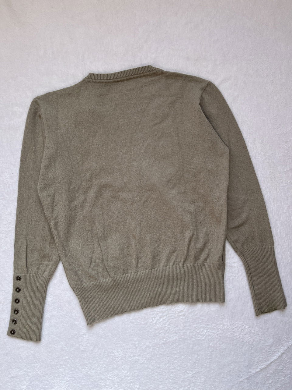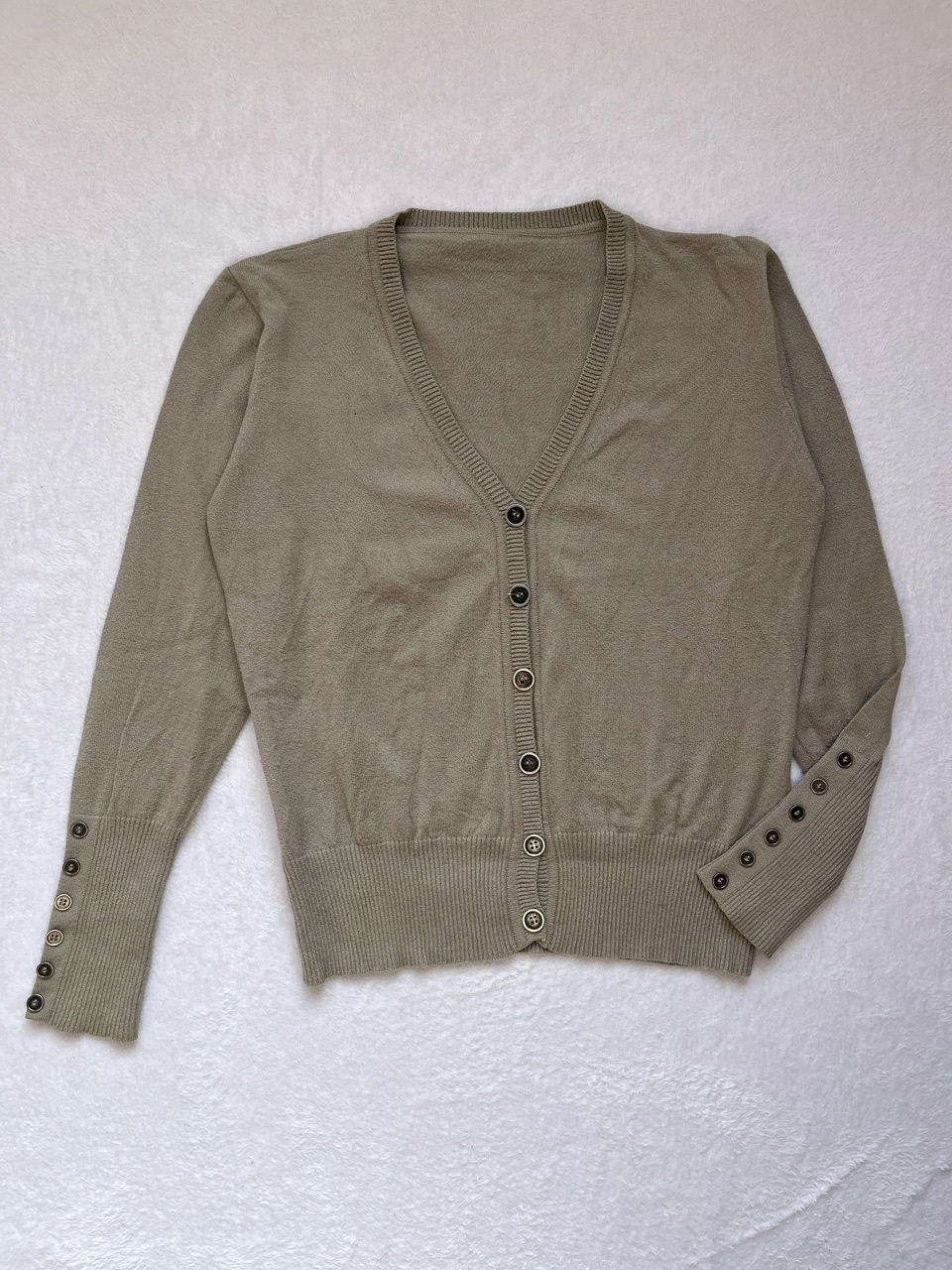 swtrcito cárdigan color beige. talle s. tejido sintético MEDIDAS (lado a lado) 39cm hmbr a hmbr 48cm ax a ax 55cm largo 56cm largo me manga