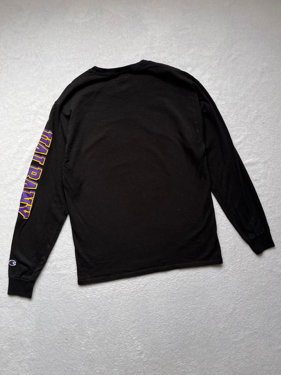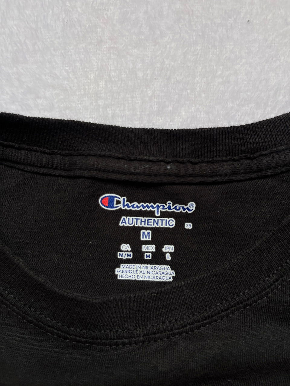 remera champion authentic ualbany con estampa en frente y manga. nueva sin etiqueta. talle m segun etiqueta, equivale a un L aprox MEDIDAS (lado a lado) 50cm hmbr a hmbr 52cm ax a ax 70cm largo 68cm largo de manga