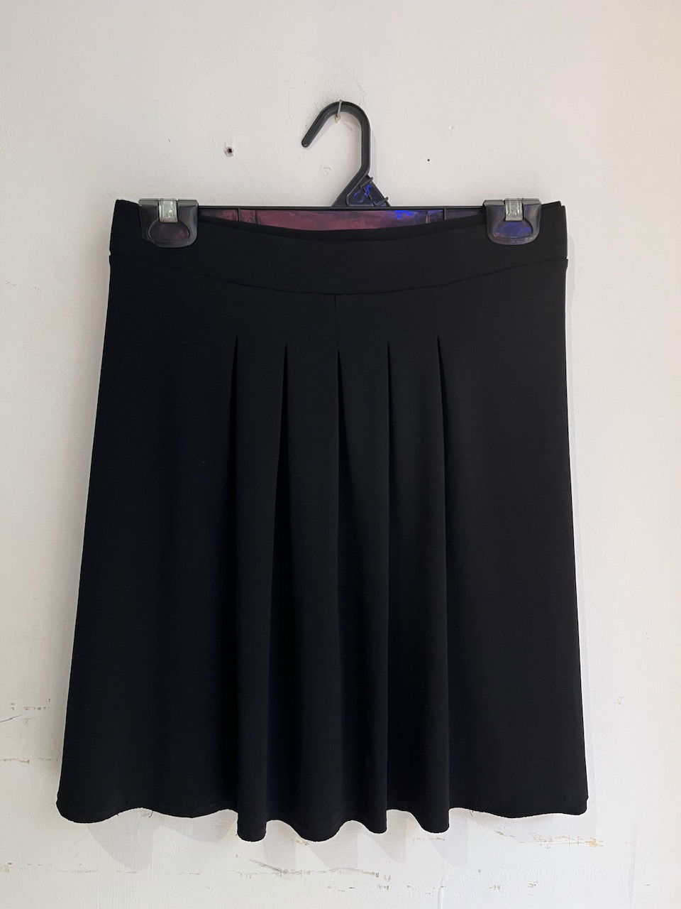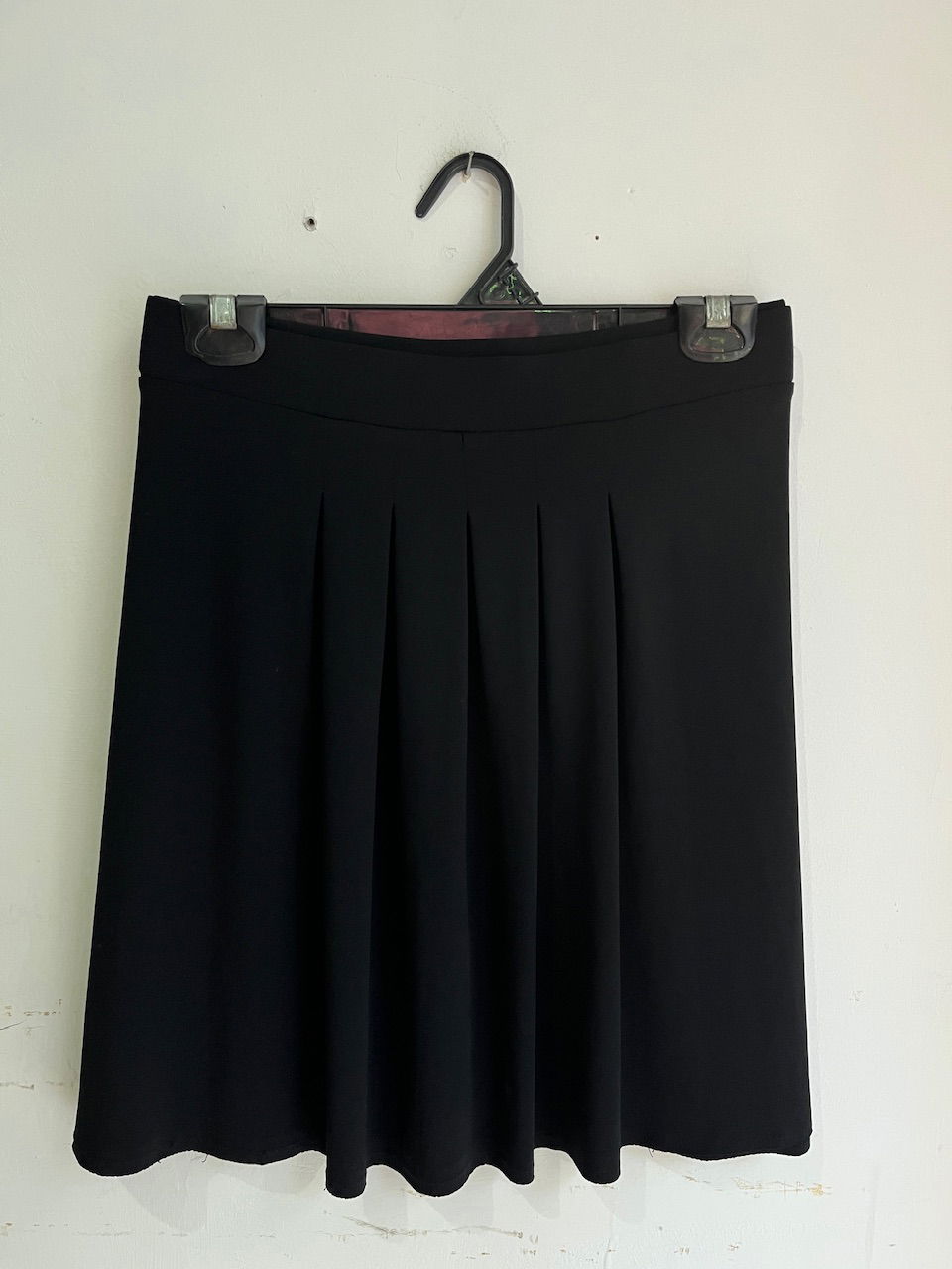 hermosa pollera con tablitas adelante, cintura elastizada. tela tipo raso. talle 46 aprox. como nueva MEDIDAS (lado a lado) 44cm cintura - 54cm cadera - 45cm largo