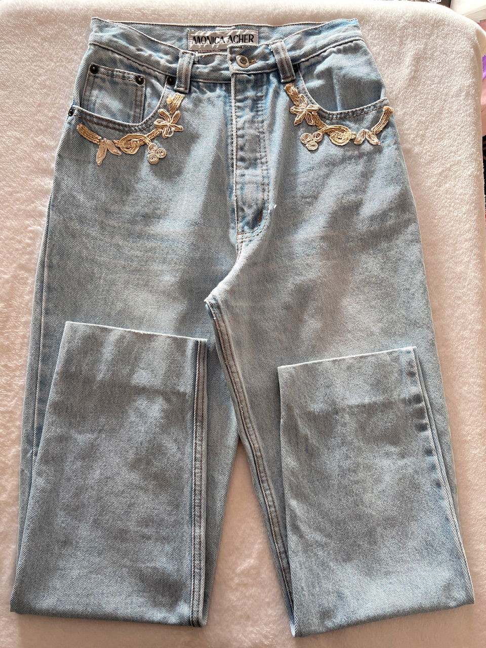 mom jean original de los 80s. en muy buen estado de conservacion a pesar de los años, ver unico detalle en fotos. es super tiro alto, con aplique original en bolsillos y 100% algodon talle 36 aprox MEDIDAS (lado a lado) 34cm cintura- 45cm cadera- 33cm largo- 102cm largo
