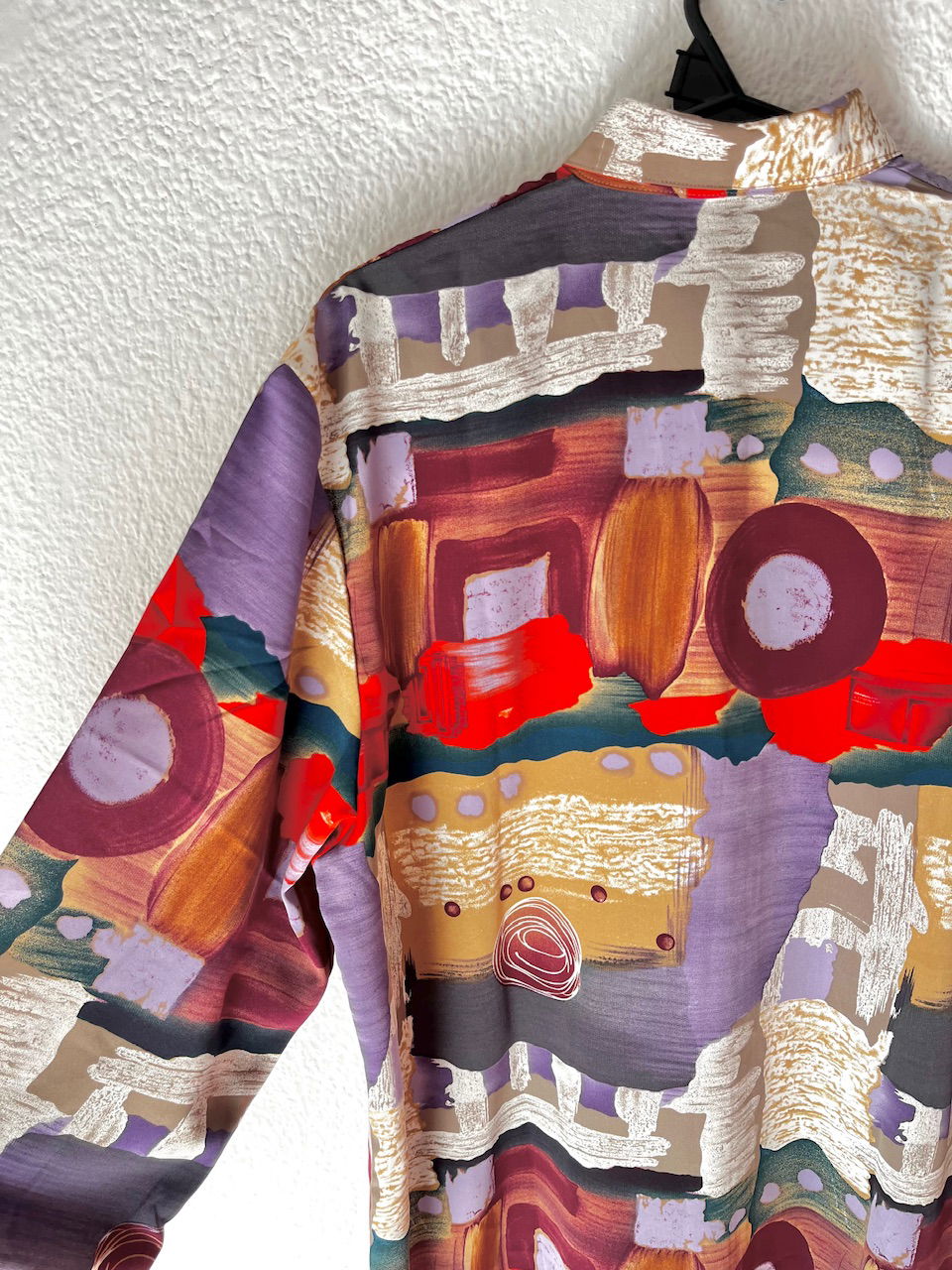 camisa original de los 80s de seda fria, full estampada, livianita y fresca. talle L aprox