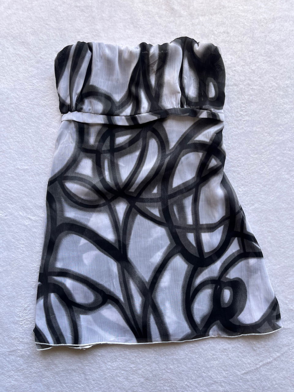 top larguito o mini vestido strapless original de los 00s de la marca Kill, es de gasa y está forrado cuenta con cierre lateral para acceder a la prenda y se puede ajustar en la cintura