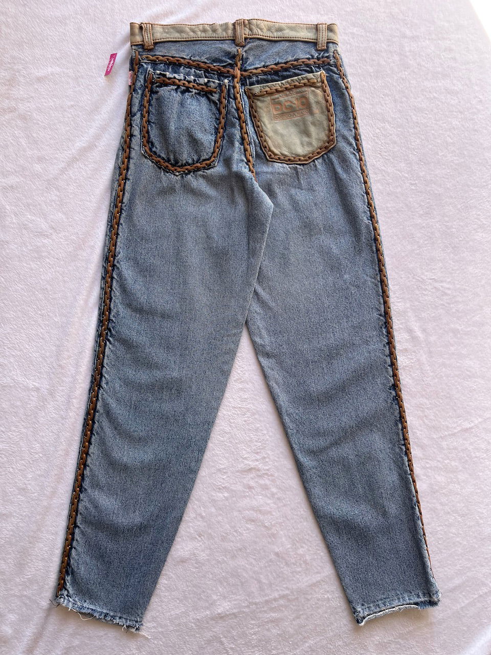 jean con detalles en cuero cosido a mano talle 36 aprox