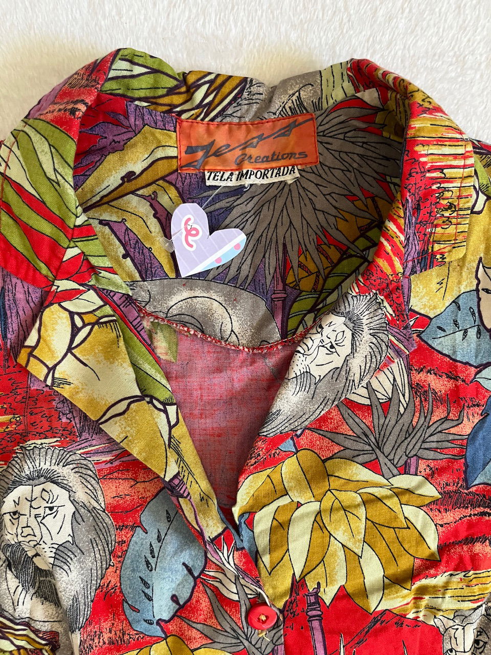 camisa con estampa de leones y plantas. estilo selvala tela es un sueño. es de algodón original de los 80s - sin hombreras como nueva talle s