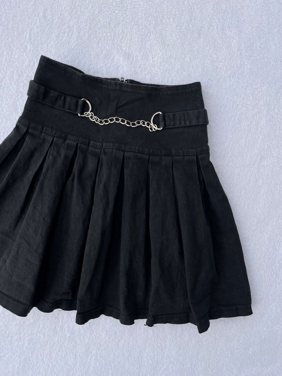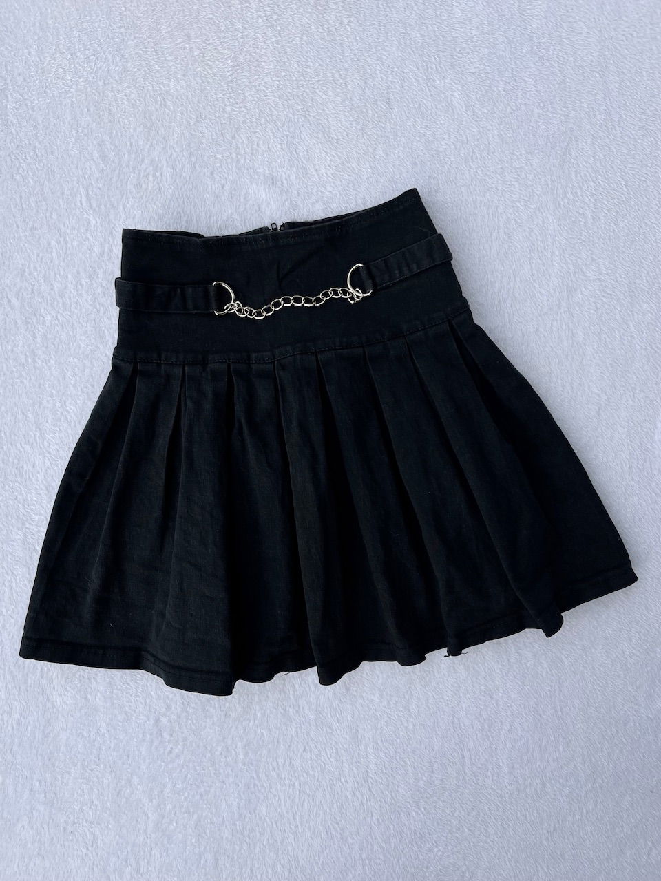 mini tableada de jean rígido con aplique de cadena y cintura ajustable