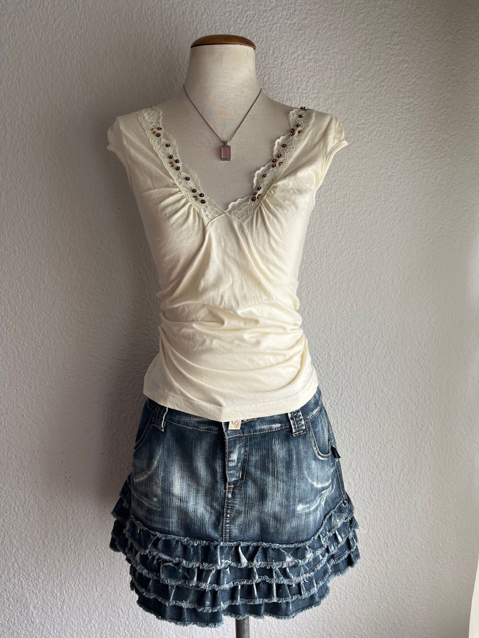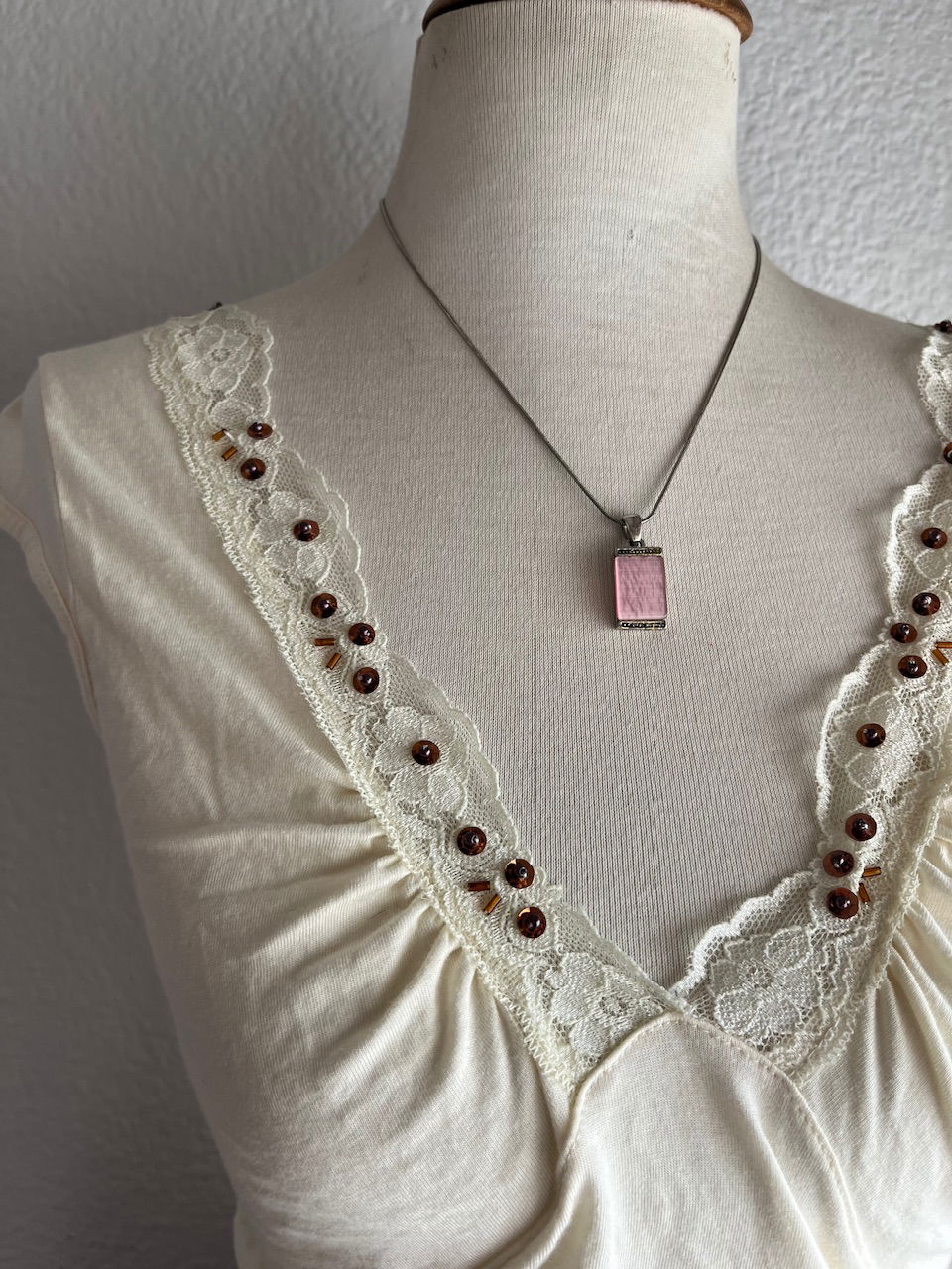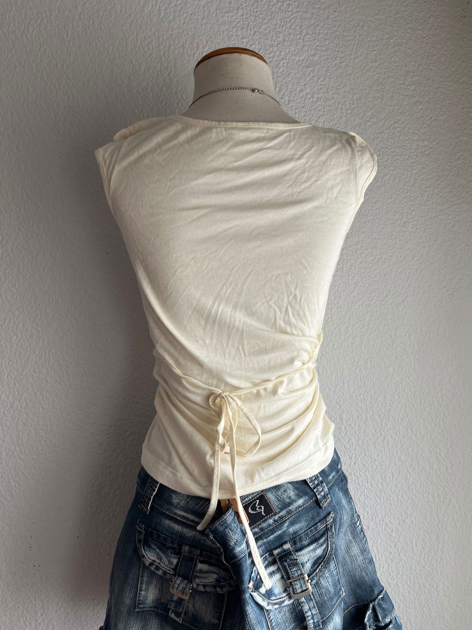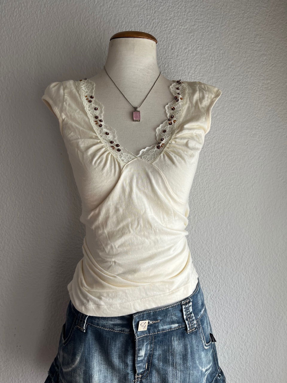 hermoso top de algodón con detalle de encaje y mostacillas talle m aprox se puede ajustar en la cintura