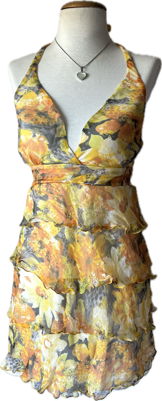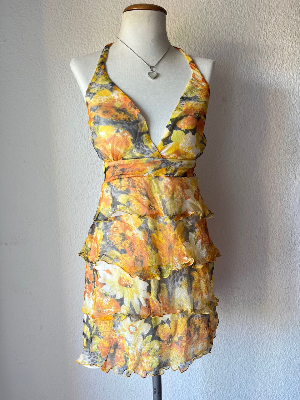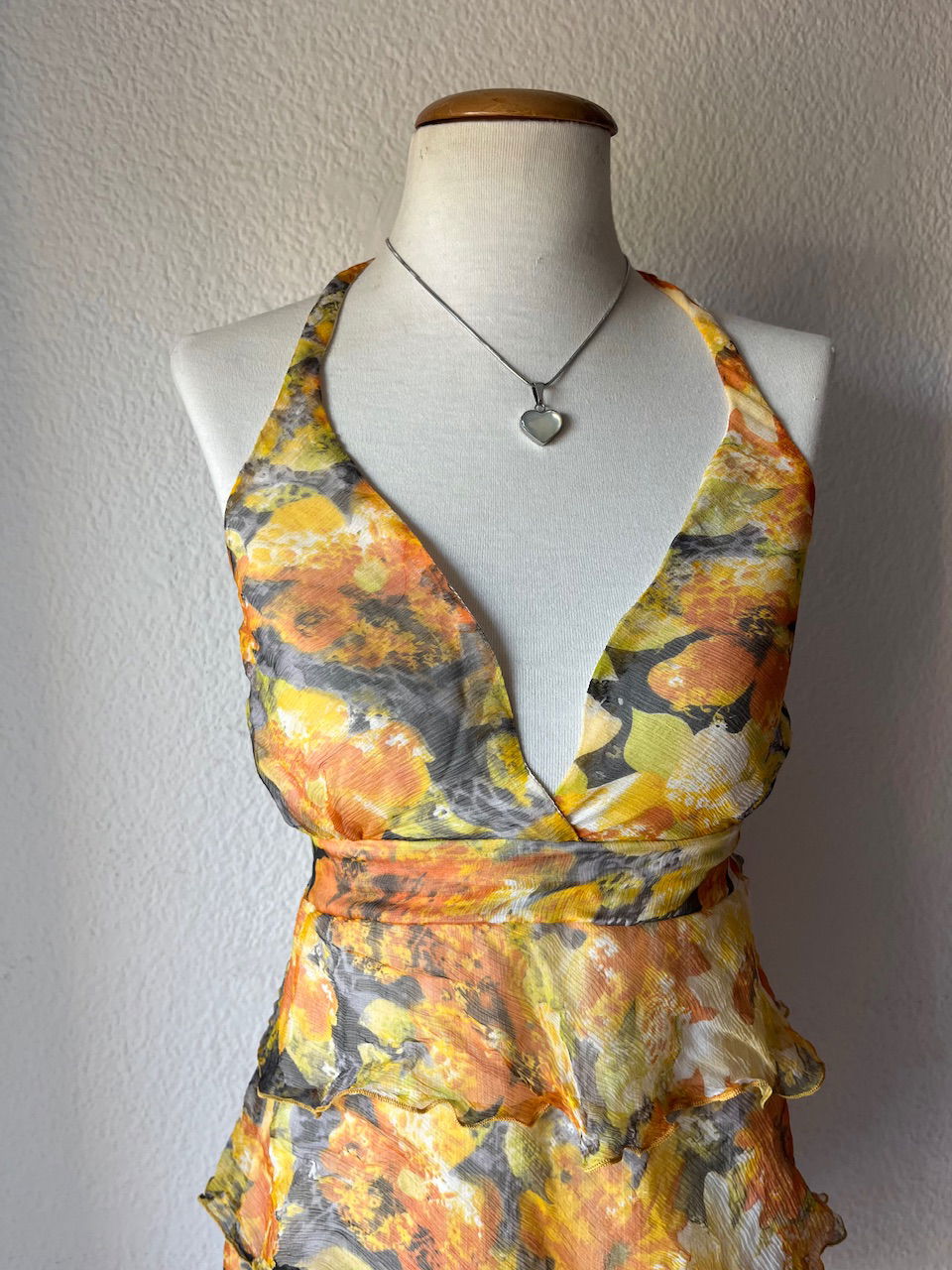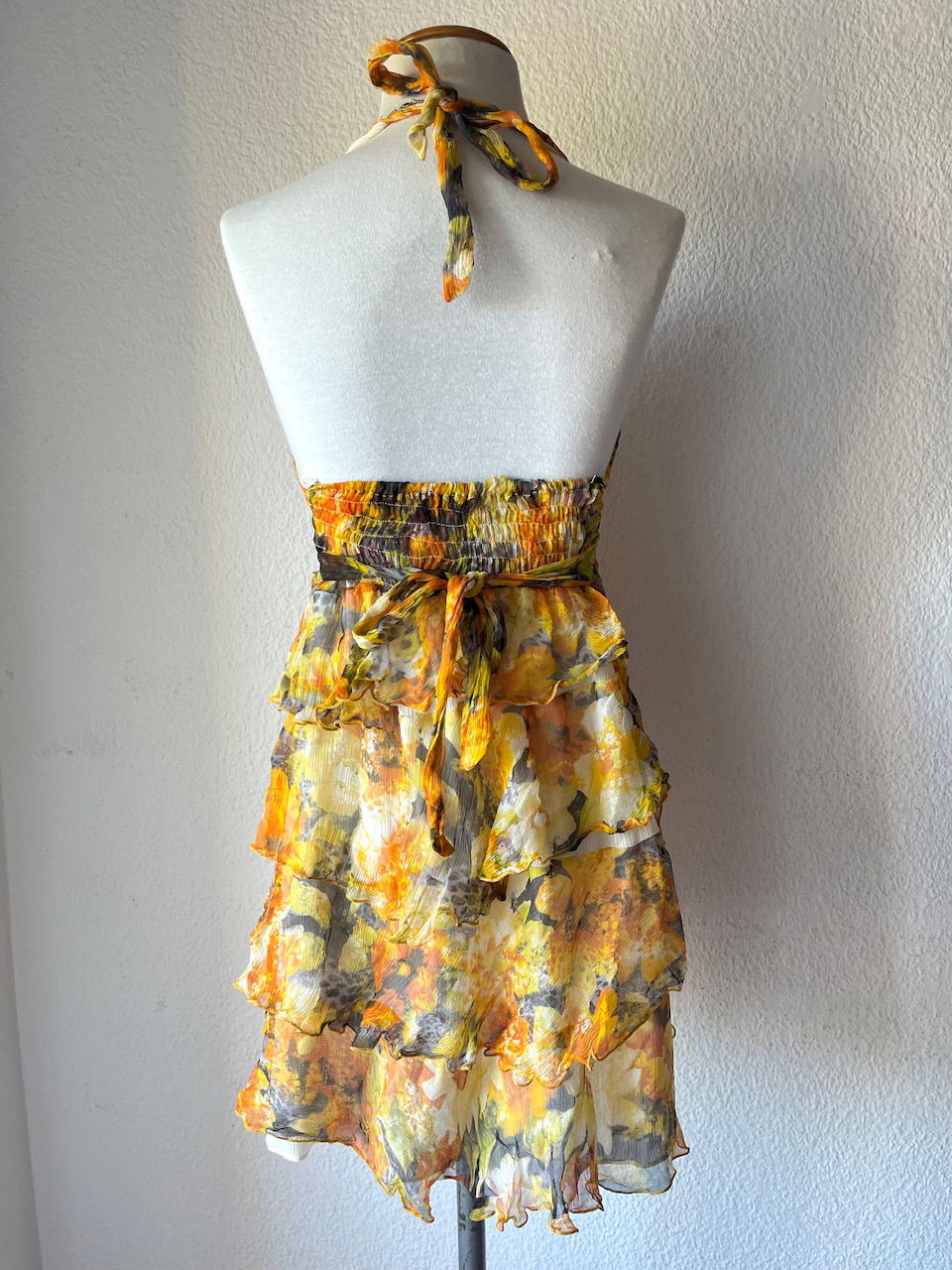 hermoso vestido de seda natural. original de los 00s, marca inédita. está forrado en algodón. es más corto adelante y más largo atrás. como nuevo. talle xs